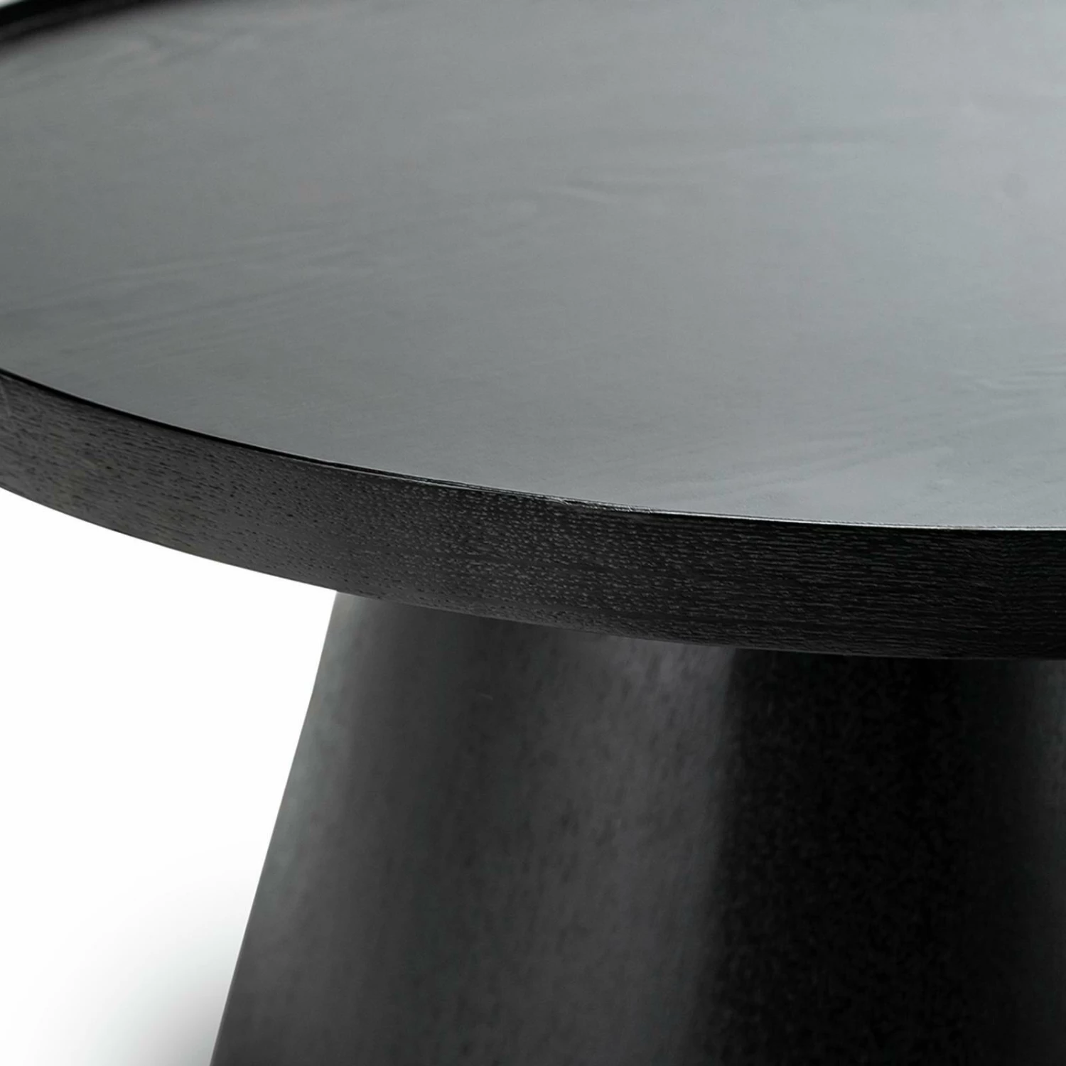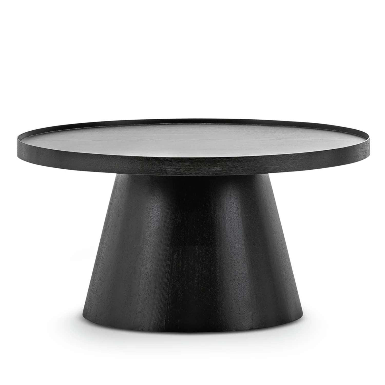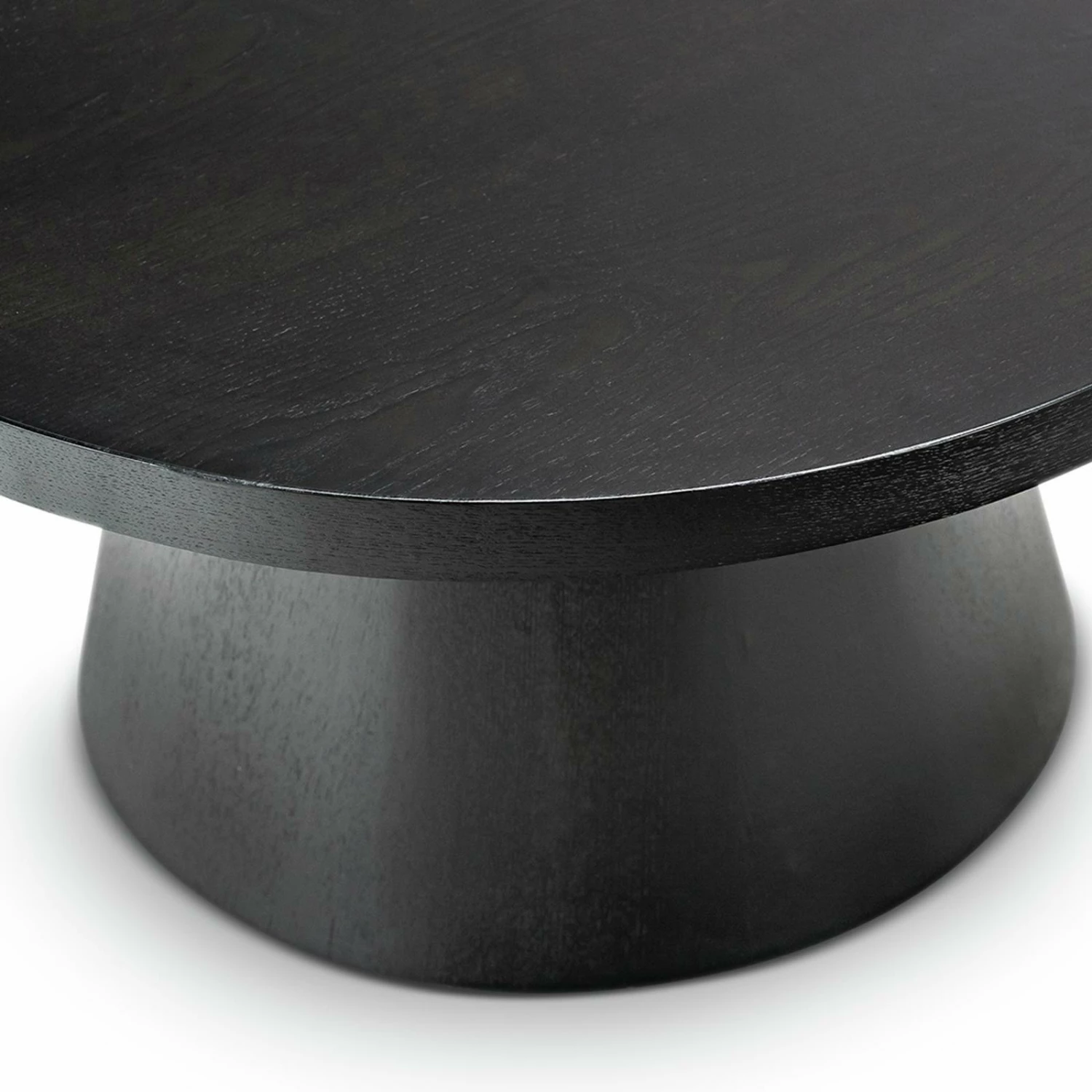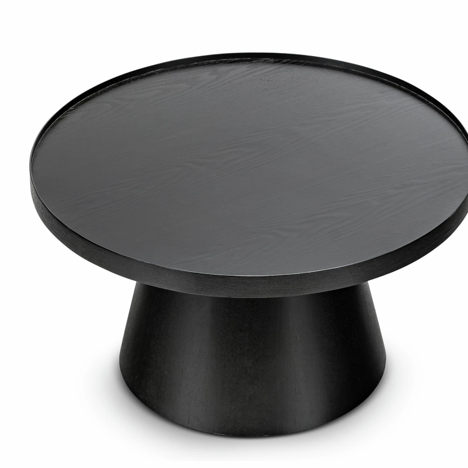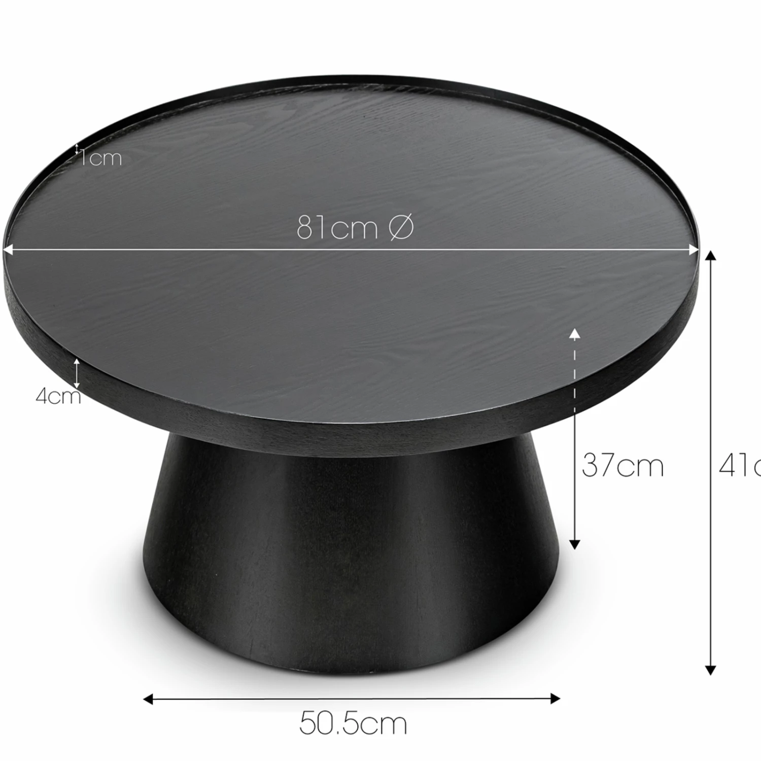 A beautiful coffee table is a sign of good taste in styling. The Adan Round Coffee Table is a modern take on a sophisticated, yet practical centerpiece. A solid framework fashioned into a perfectly circular 80cm round diameter table top. Featuring a subtle tray table lip for some added character, resting on a pedestal leg base. Designed in consideration by offering plenty of surface space and leg room beneath. The monochromatic all black American Oak Veneer brings out a Chic Contemporary look to any living space. Ideal for entertaining guests, décor arrangement or simply as open storage, this exquisite piece will make you proud.