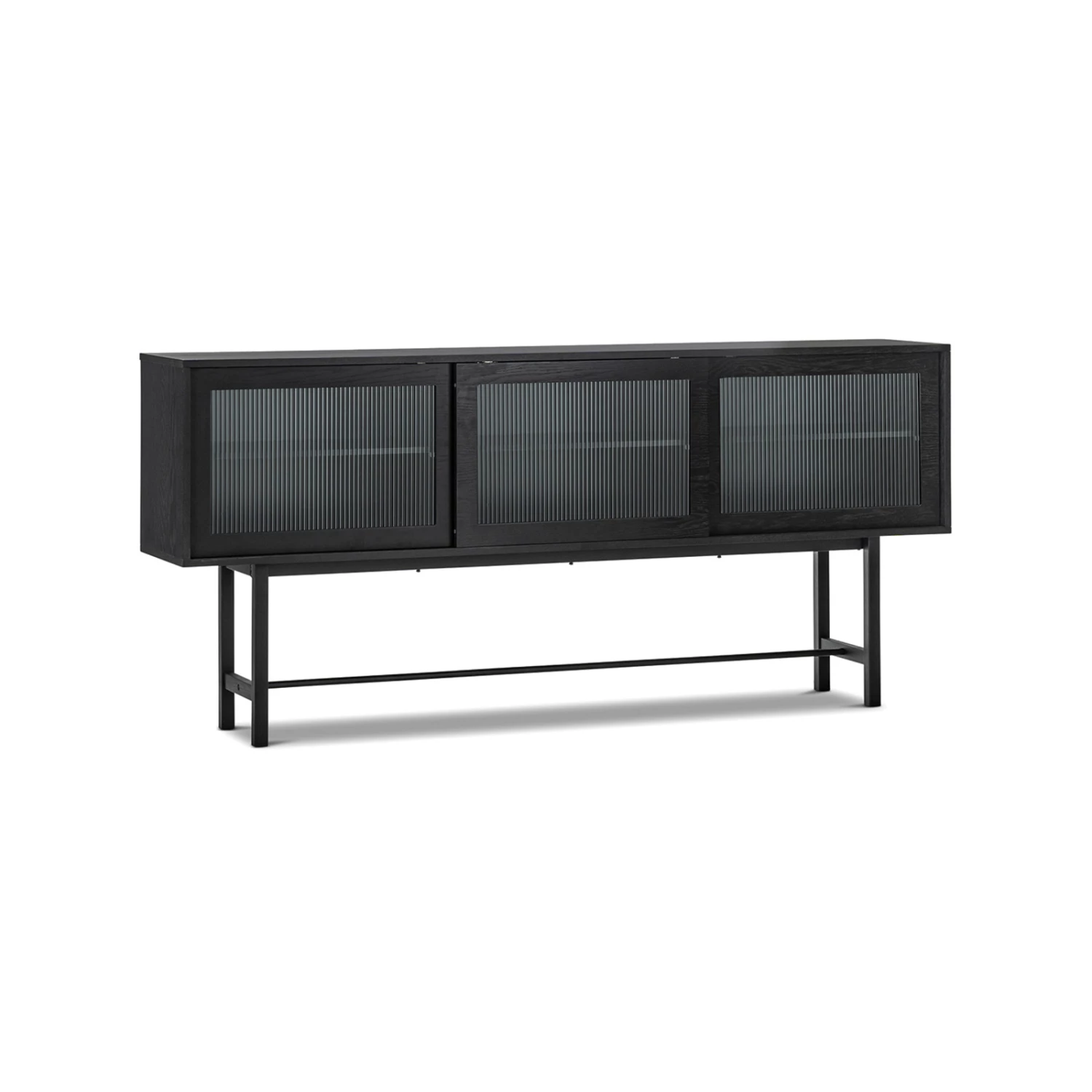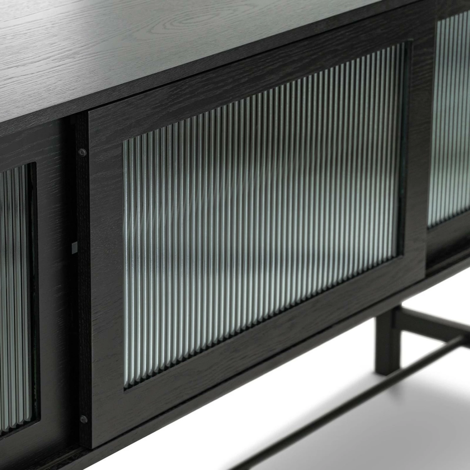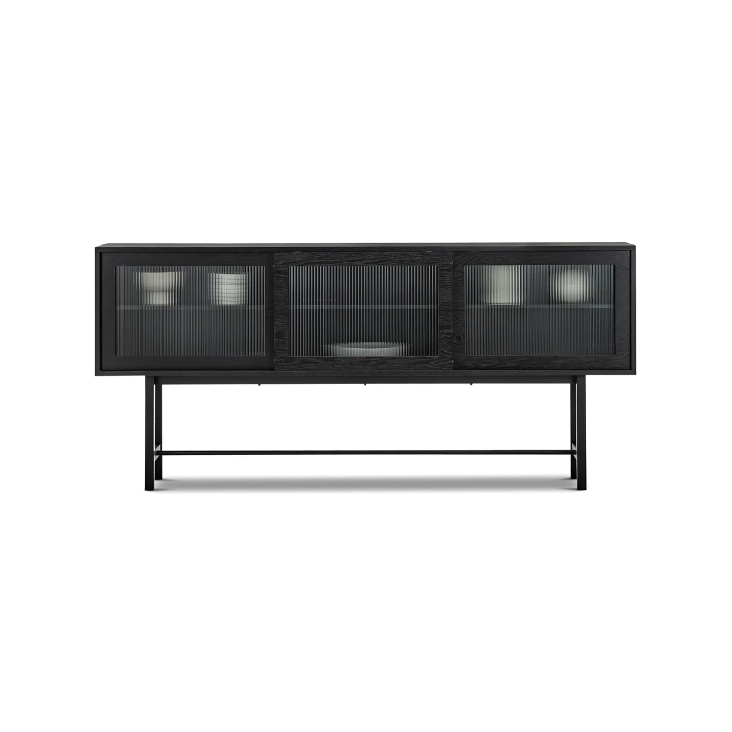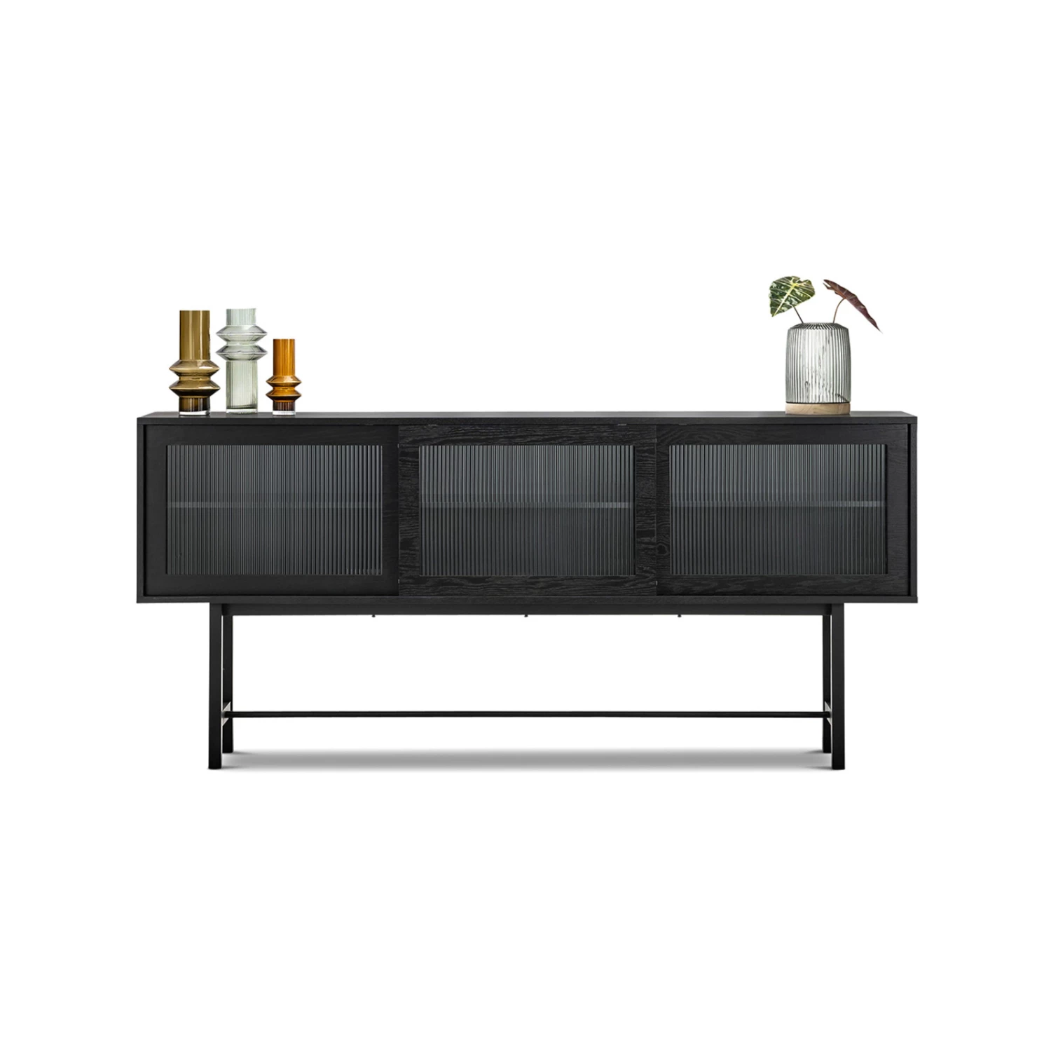 Fluted Glass has been long popular amongst interior designers for the its textured appearance and the ability to diffuse light. Distinctively characterised by its vertical grooves and ribbed edges. The Arae Fluted Glass Sideboard is an adaptation to those principles. The spacious sideboard balances modular design with functional Scandi appeal. Incorporating elements of modern architecture, the fluted glass doors create a unique type of transparency, just enough to peak at one’s curiosity at what’s behind those doors. Combining American oak wood veneers and complementing clean-black stainless steel lines. The unit rests upon a slender set of legs. Suspending the sideboard at just the right level and reach. Who knew functionality and aesthetics could be paired so well together.