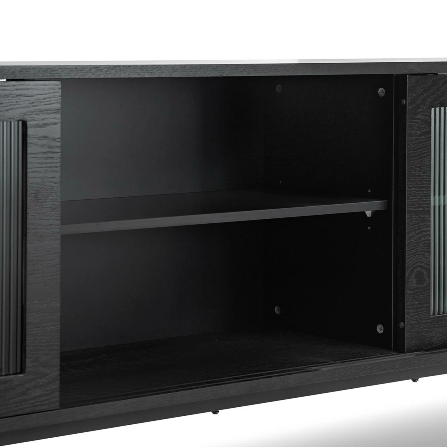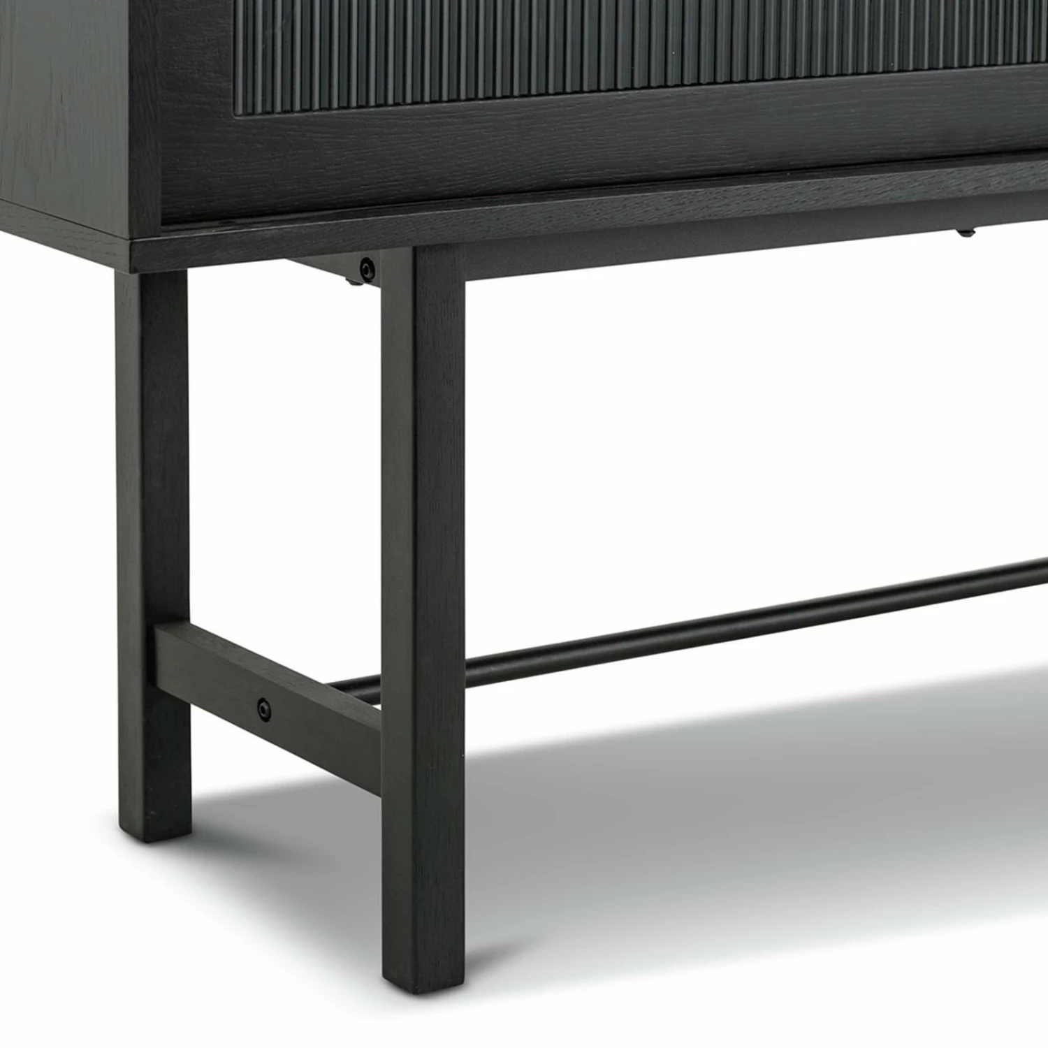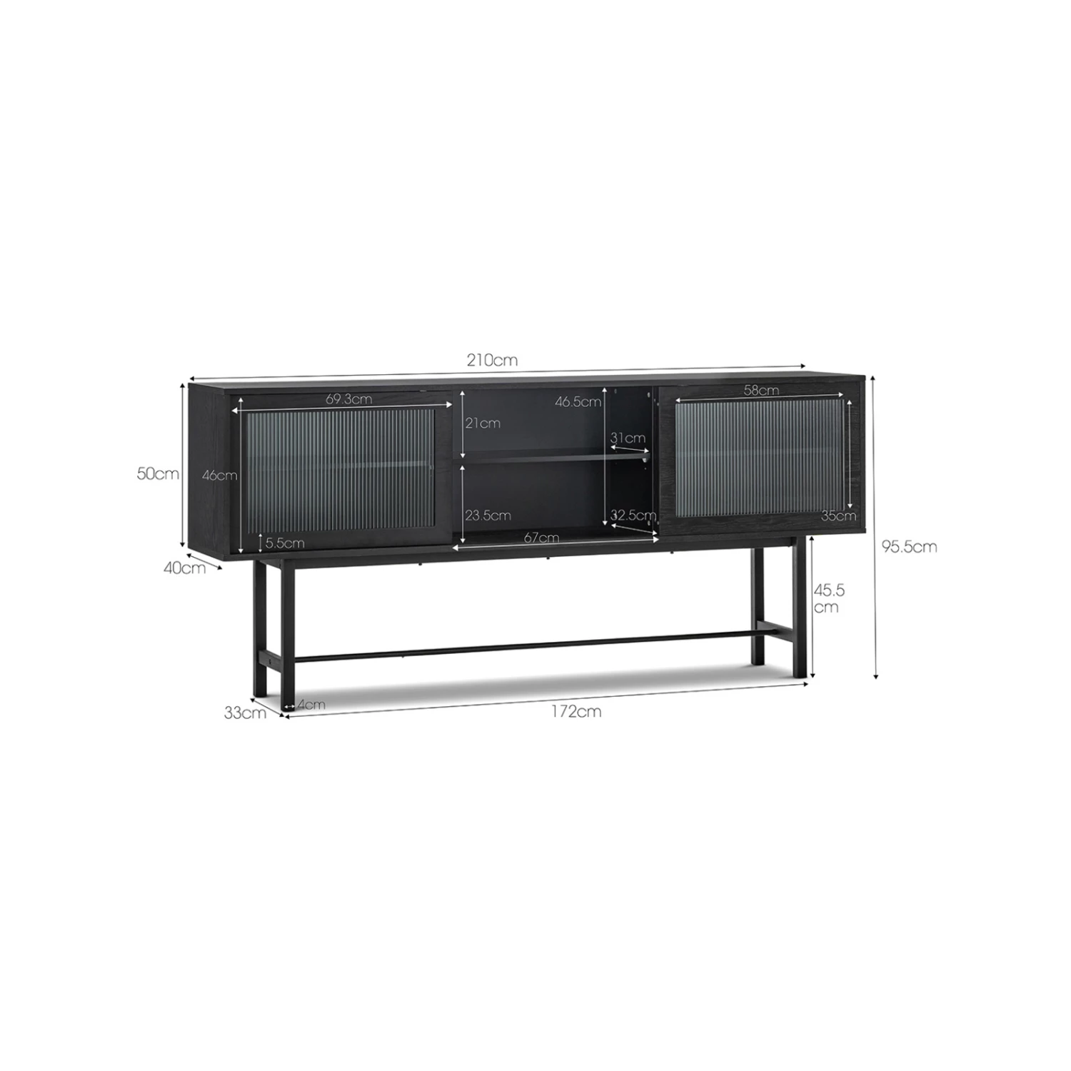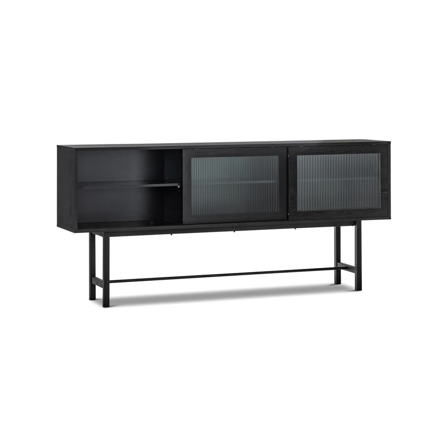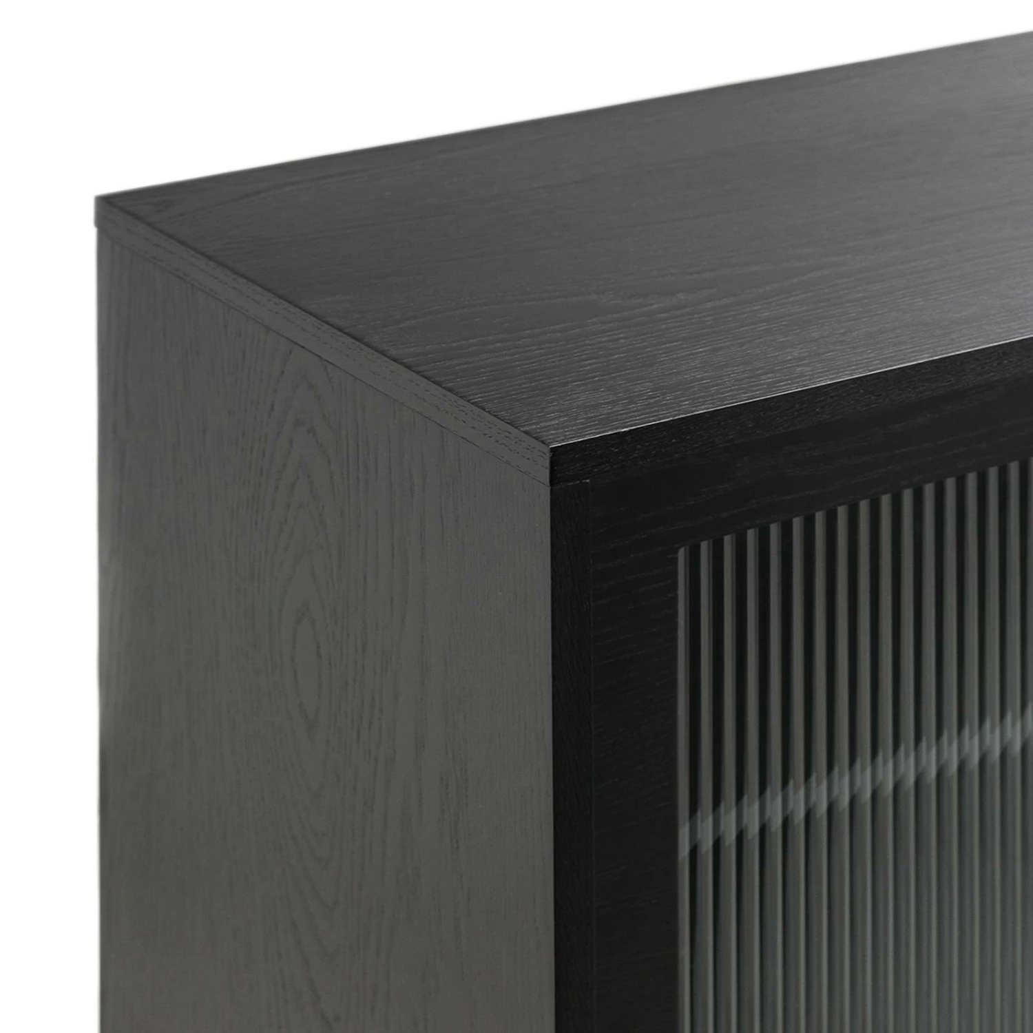 Fluted Glass has been long popular amongst interior designers for the its textured appearance and the ability to diffuse light. Distinctively characterised by its vertical grooves and ribbed edges. The Arae Fluted Glass Sideboard is an adaptation to those principles. The spacious sideboard balances modular design with functional Scandi appeal. Incorporating elements of modern architecture, the fluted glass doors create a unique type of transparency, just enough to peak at one’s curiosity at what’s behind those doors. Combining American oak wood veneers and complementing clean-black stainless steel lines. The unit rests upon a slender set of legs. Suspending the sideboard at just the right level and reach. Who knew functionality and aesthetics could be paired so well together.