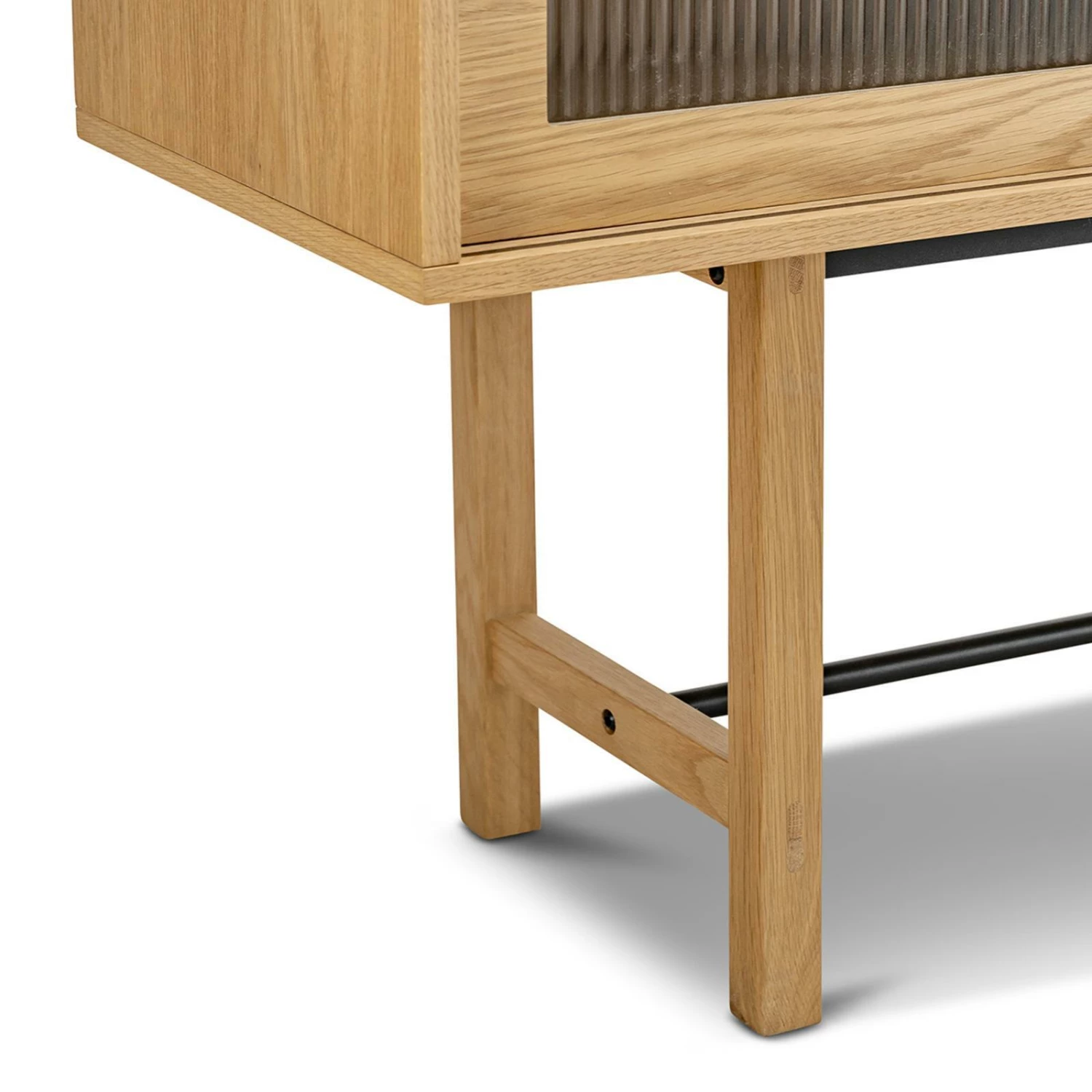 - Frame Material Details: American Oak Wood Veneer, Solid MDF Panels, Fluted Glass, Stainless Steel