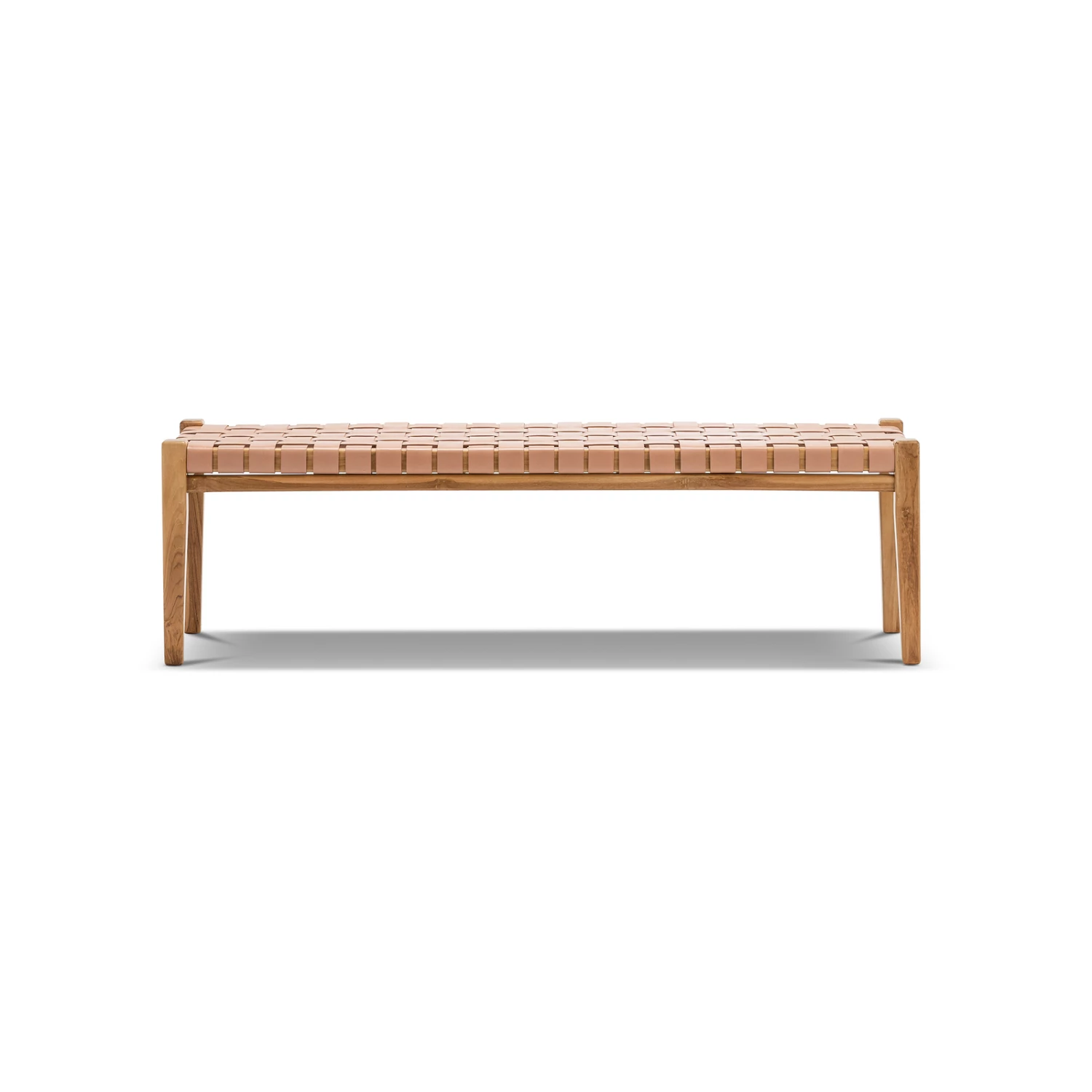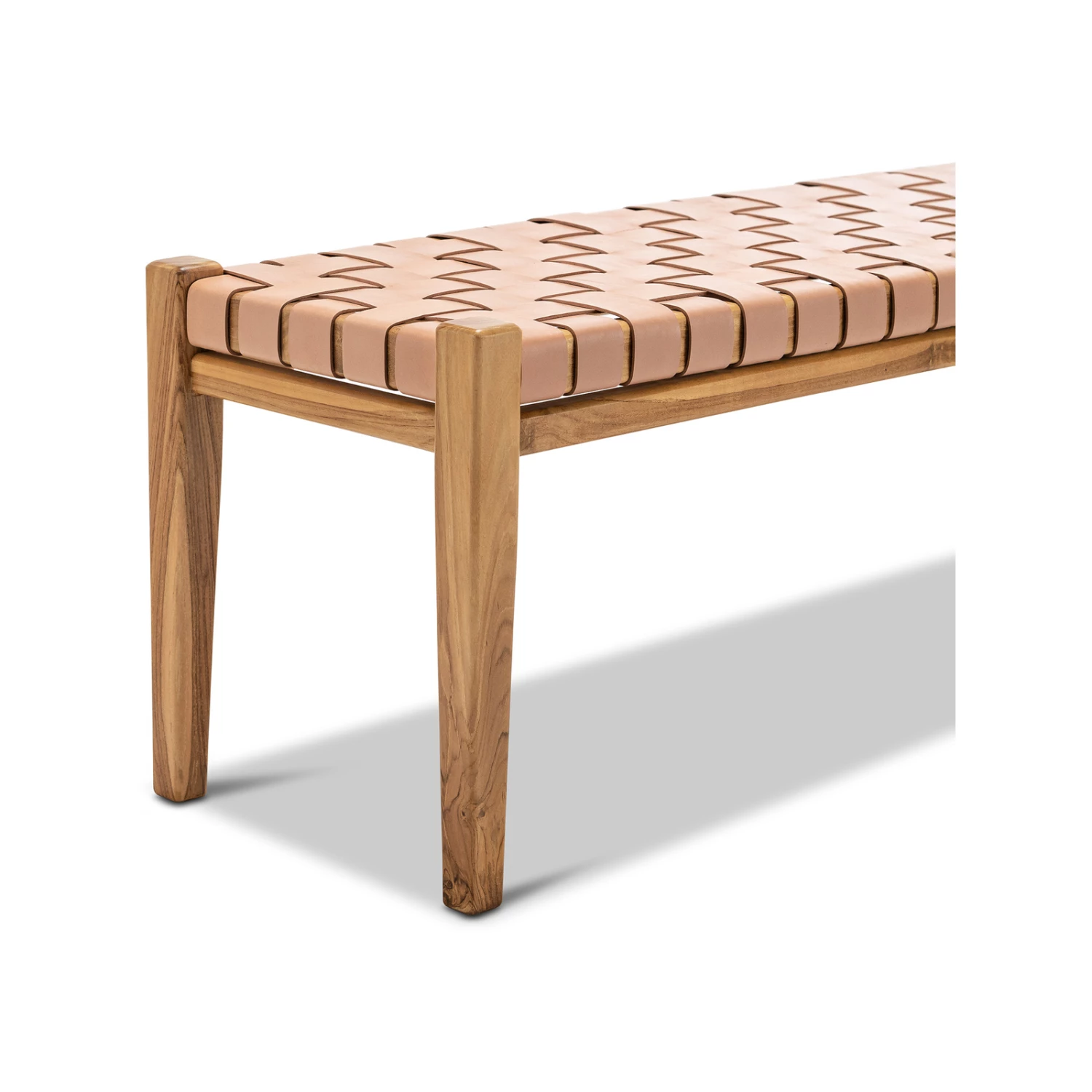 Inject a gorgeous textural statement to your home with the Casey Woven Leather Bench in Nude Tan. The 1.5m length makes a bold impact, whilst its feature textured hand-woven genuine leather straps is complemented by a solid teakwood frame. We love it paired with colourful artwork in an entrance hallway, mixed into a dining seat setting, or a stylish feature at the end of a Queen or King sized bed as the perfect zone to drop your things off. The Casey Bench with its perfectly balanced natural colour tones fits seamlessly into a myriad of modern Australian interiors.Please Take Note: All of our products are beautifully handcrafted from Central Java Indonesia, utilising natural & organic materials, hence no two pieces will be the same.The frame is constructed from natural sustainably grown solid teakwood, the organic composition of the wood will display different shades of colour as intended by mother nature.While our team take the upmost care in selecting our hides, leather is a natural product and differs from hide to hide. Small variances in colour may be expected. Small imperfections, marks & blemishes may also be visible. This is not considered a fault but inherent of the natural beauty and uniqueness of the leather.