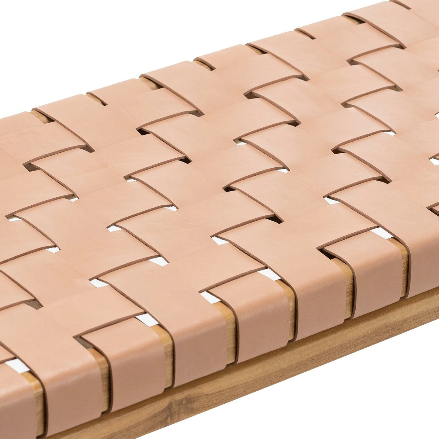 - Danish inspired 1.5m hand-woven genuine cowhide 5cm leather strapped bench