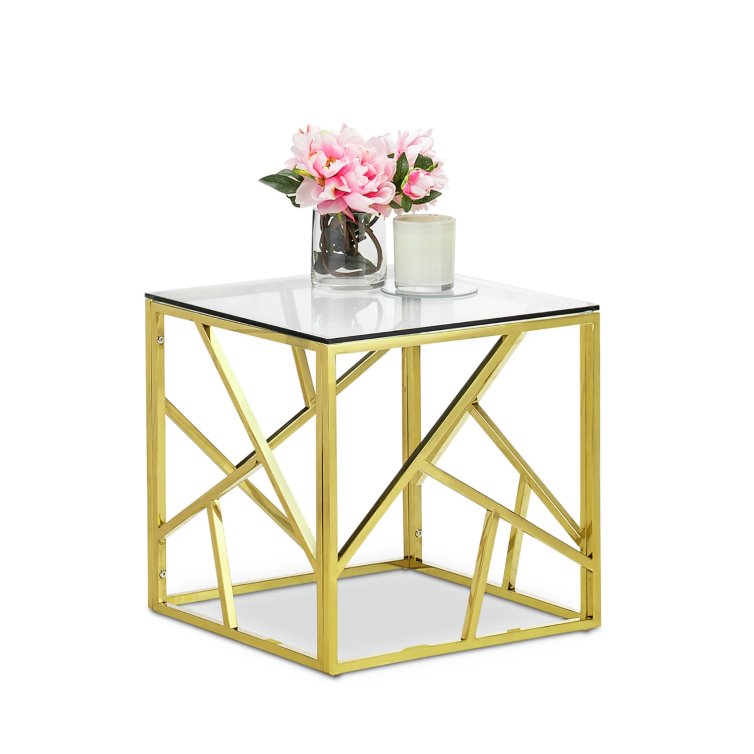 Such simple and daring design, yet it maintains an air of elegance and chicness. Imagine the Elena side table boldly accompanying your sofa or bed. It does not demand attention, but commands the rest of your interior to toe the line. Between the tempered glass top and its unique abstract geometric lines, the Elena side table has the chops to boss design around. Introduce that pizzazz into your home with The Elena side table.