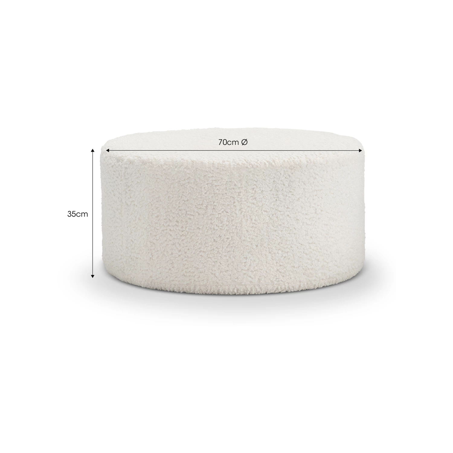 Bouclé fabric is back and it’s definitely the hottest interior trend of the moment. French for ‘curl’ or ‘loop’ the textured wool adds instant interest into any modern space along with a level of retro coziness. Inject soft curves into your living with the Halle Medium Round Ottoman. With its generous size and flat stable surface, Halle is both stylish and practical upholstered with its distinctive wooly fabric. Providing snuggable warmth and comfort while the gorgeous shade of creamy white makes for easy versatile styling. A nifty carry handle on the side allows for easy moveability but otherwise subtly fades away in the background for a seamless streamlined aesthetic. Tuck it slightly under a coffee table and layer with a tray and décor to extend your table real estate space, or pull it out for extra seating options.