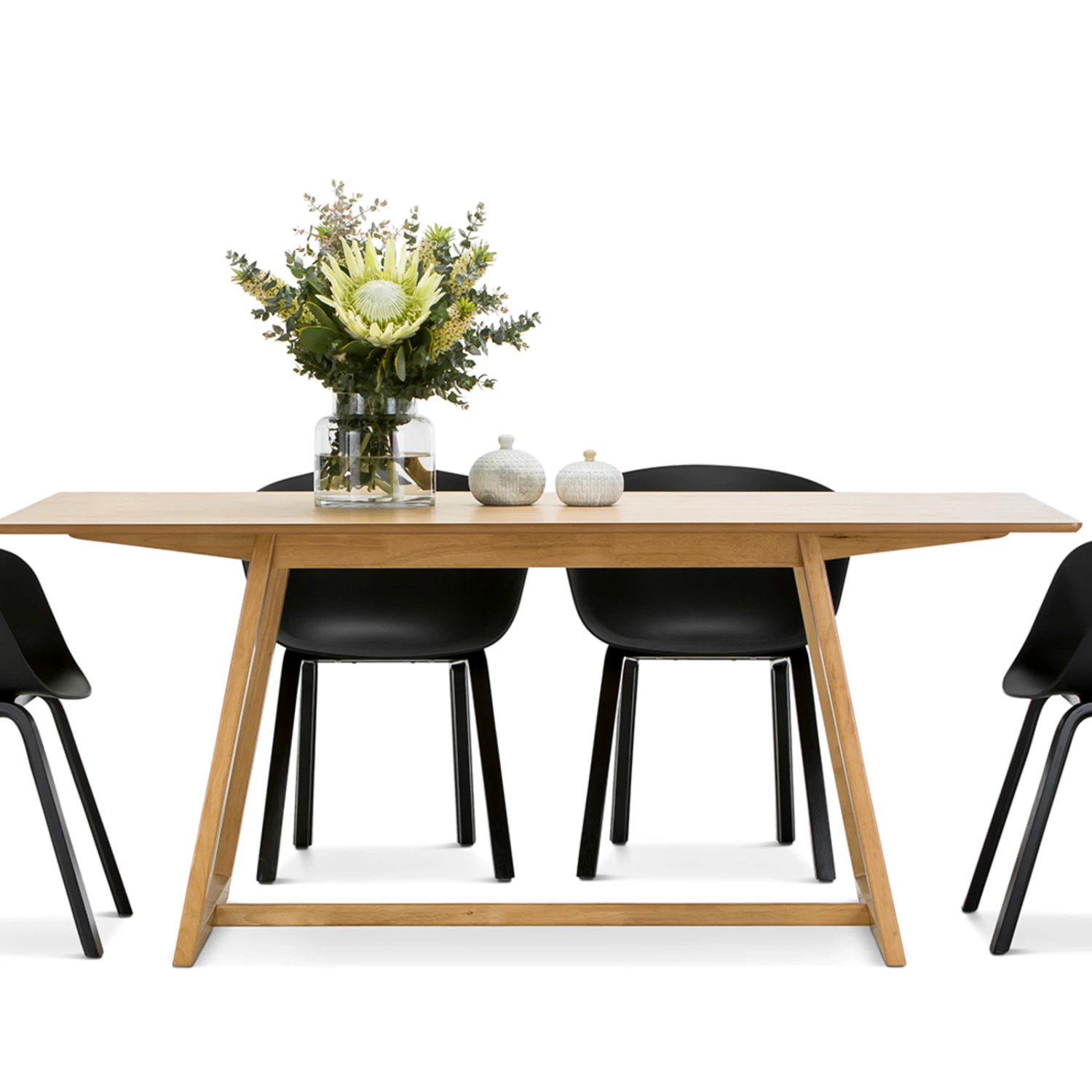 There are some things that simply command a great deal of authority simply by the way they are. The Manhattan Dining Table is an imposing piece at 180cm, but remains dignified amongst other interior pieces regardless of style. Along with it’s sturdy timber construction and Natural Oak Veneer, the geometric minimal design allows for the dining table to pair well with a wide range of dining chairs earning it’s place in any home.