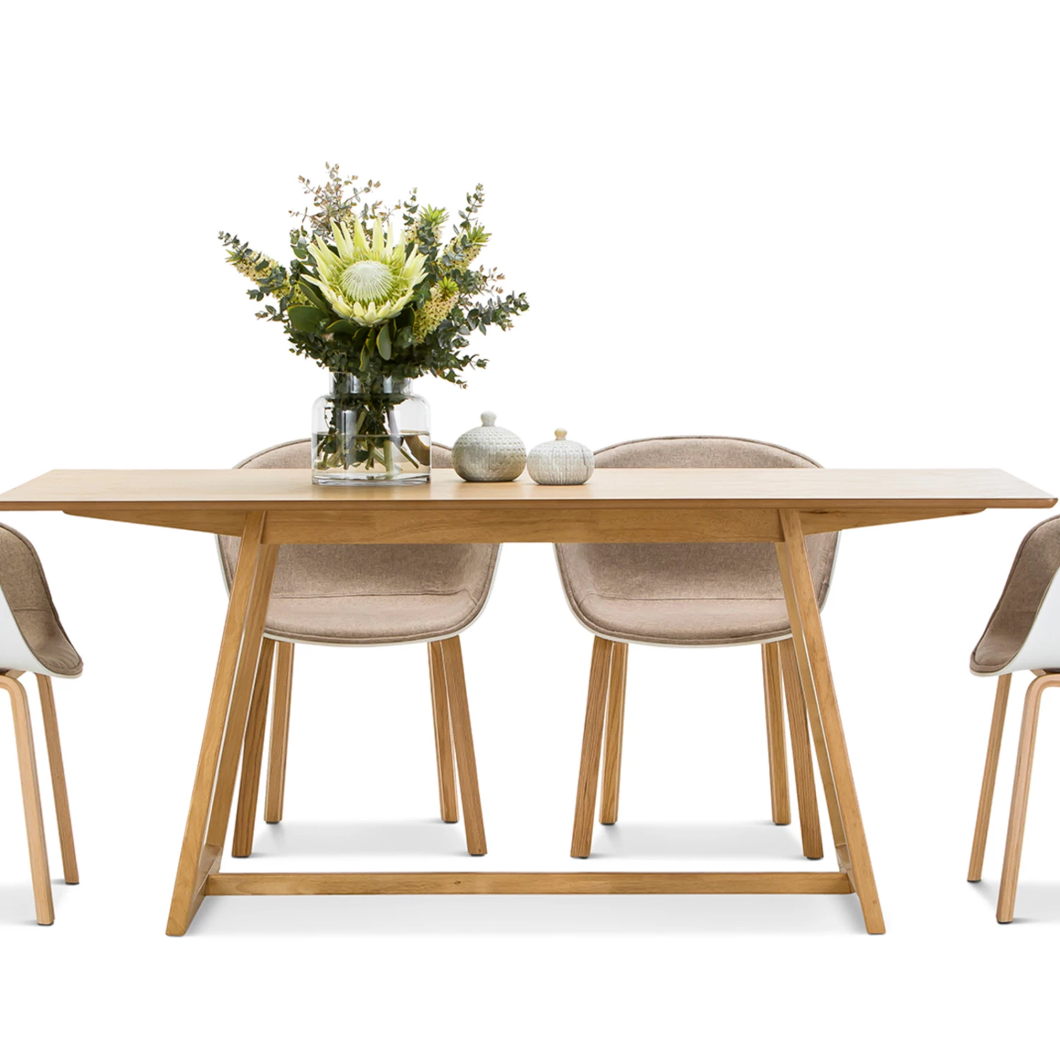 There are some things that simply command a great deal of authority simply by the way they are. The Manhattan Dining Table is an imposing piece at 180cm, but remains dignified amongst other interior pieces regardless of style. Along with it’s sturdy timber construction and Natural Oak Veneer, the geometric minimal design allows for the dining table to pair well with a wide range of dining chairs earning it’s place in any home.