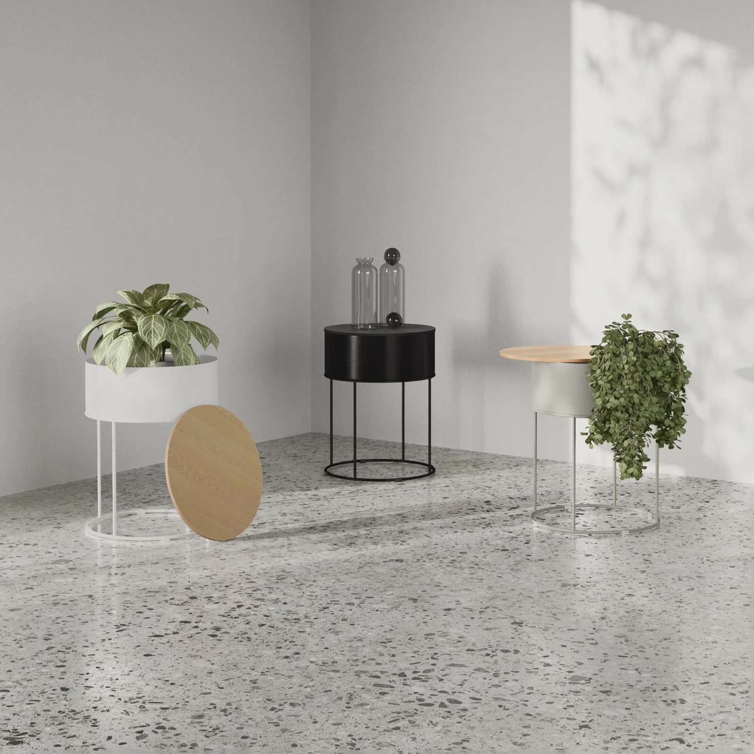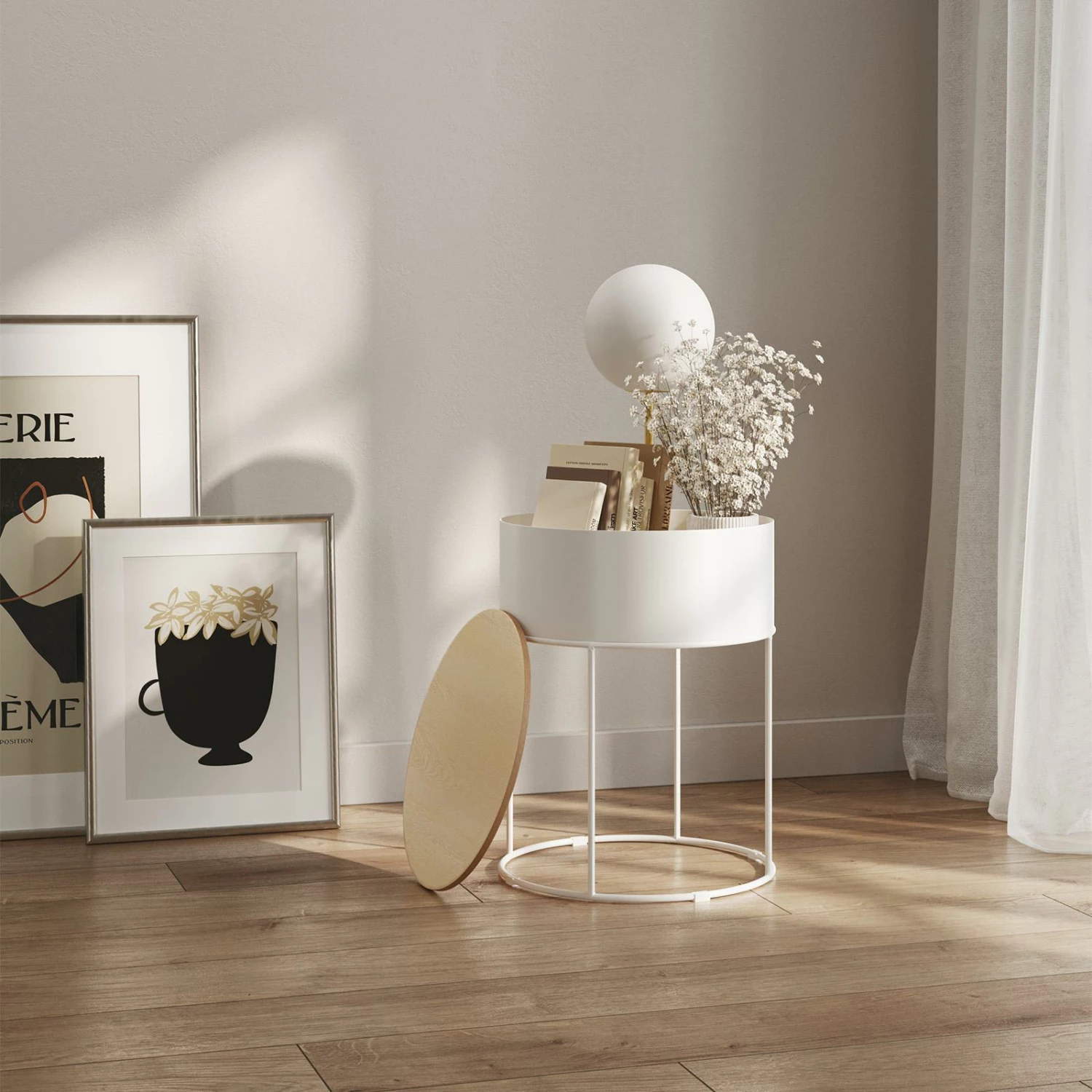An ode to a great Danish piece, the Nyah Round Side Table is a reproduction of Ferm Living’s Plant Box, a timeless piece of furniture that adds a natural expression to one’s home. The round storage space is wrapped in rippled pattern finish and supported by a sleek steel base, a versatile design that fits any room whether as a side table, bedside table, or plant stand. Crafted with a beautiful contrast of the oak cover lid and steel body, the Nyah sets a visual pleasure to its contemporary design.