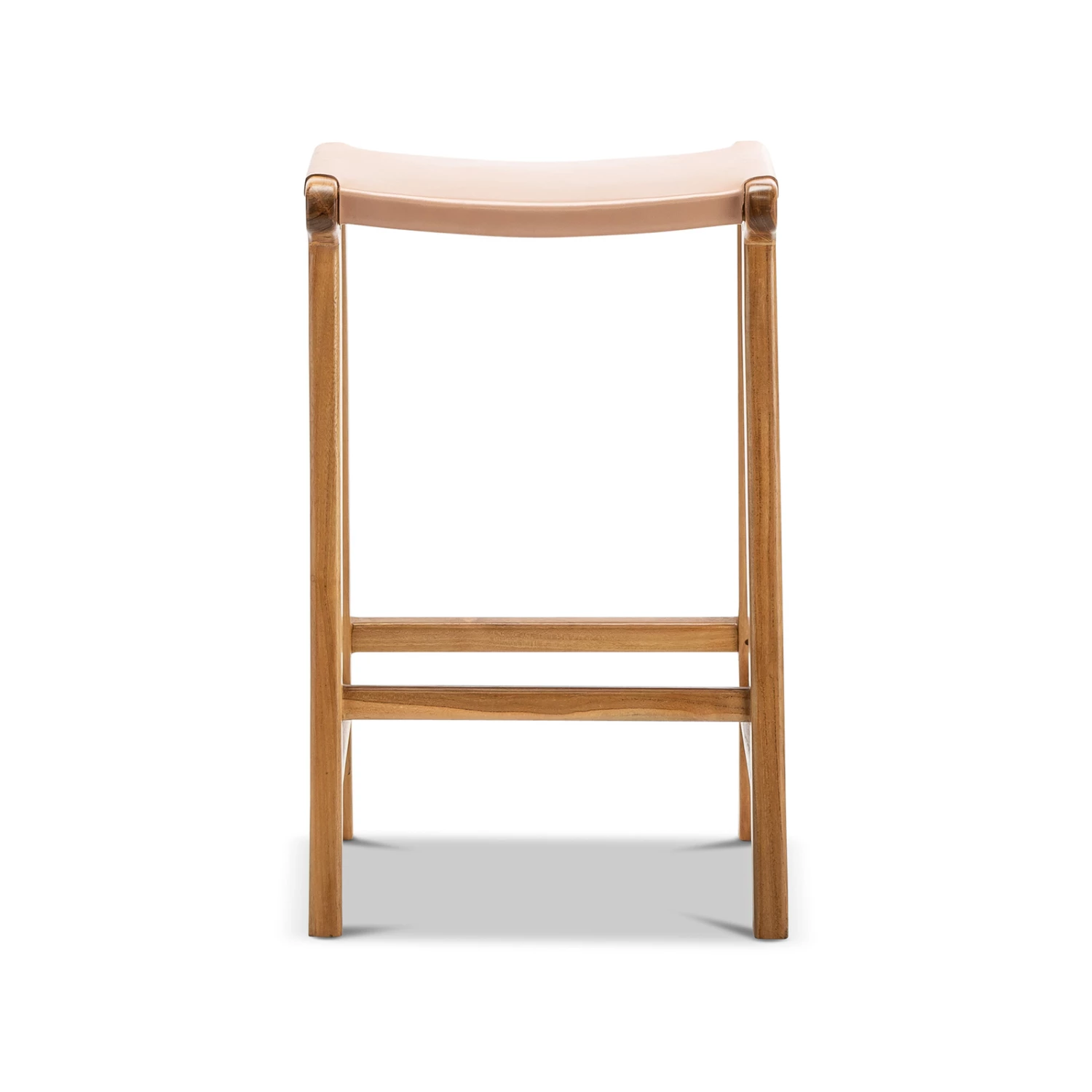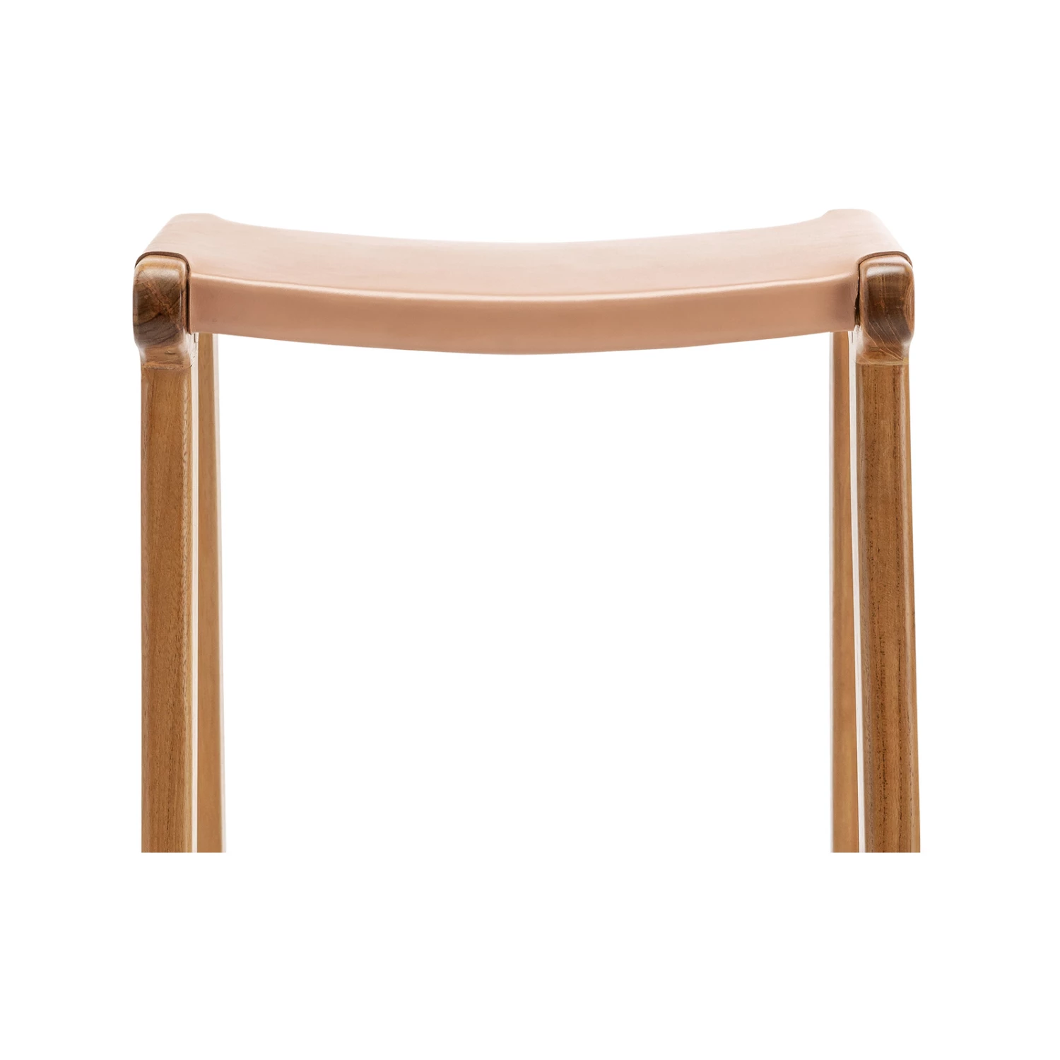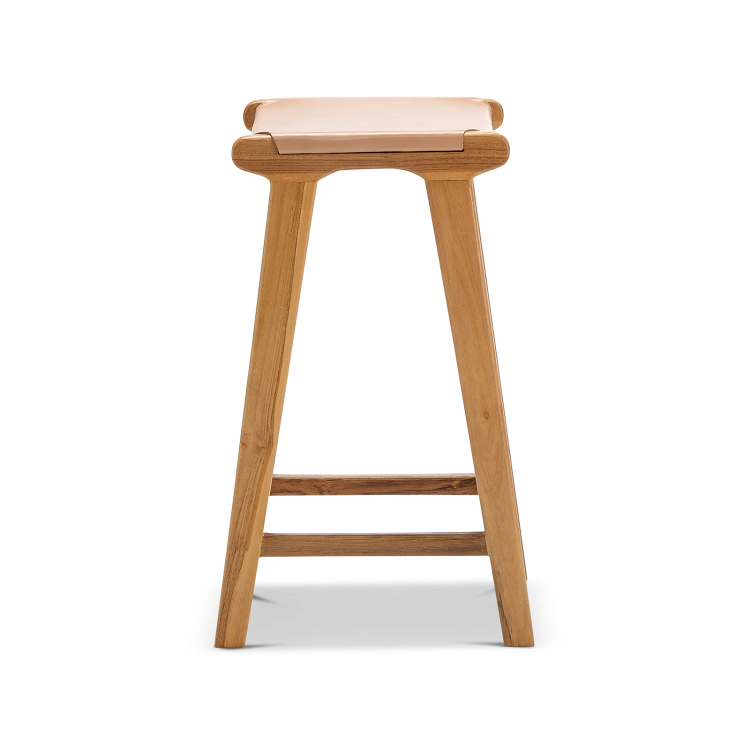 The Casey Flat Leather Barstool brings style, texture and contemporary Danish vibes to your breakfast bar. Unlike the conventional woven strap array, the flat leather version as the name suggests headlines a fully stretched cowhide sheet for the seating area. Complemented by a solid sustainably sourced Solid Teakwood frame. Easy to clean and offering great support, the leather seats are both comfortable and practical. Its balanced natural colour tones seamlessly fits into casual relaxed Australian interiors, perfectly pairing with your everyday kitchen counter seating needs.Please Take Note: All of our products are beautifully handcrafted from Central Java Indonesia, utilising natural & organic materials, hence no two pieces will be the same.The frame is constructed from natural sustainably grown solid teakwood, the organic composition of the wood will display different shades of colour as intended by mother nature.While our team take the upmost care in selecting our hides, leather is a natural product and differs from hide to hide. Small variances in colour may be expected. Small imperfections, marks & blemishes may also be visible. This is not considered a fault but inherent of the natural beauty and uniqueness of the leather.