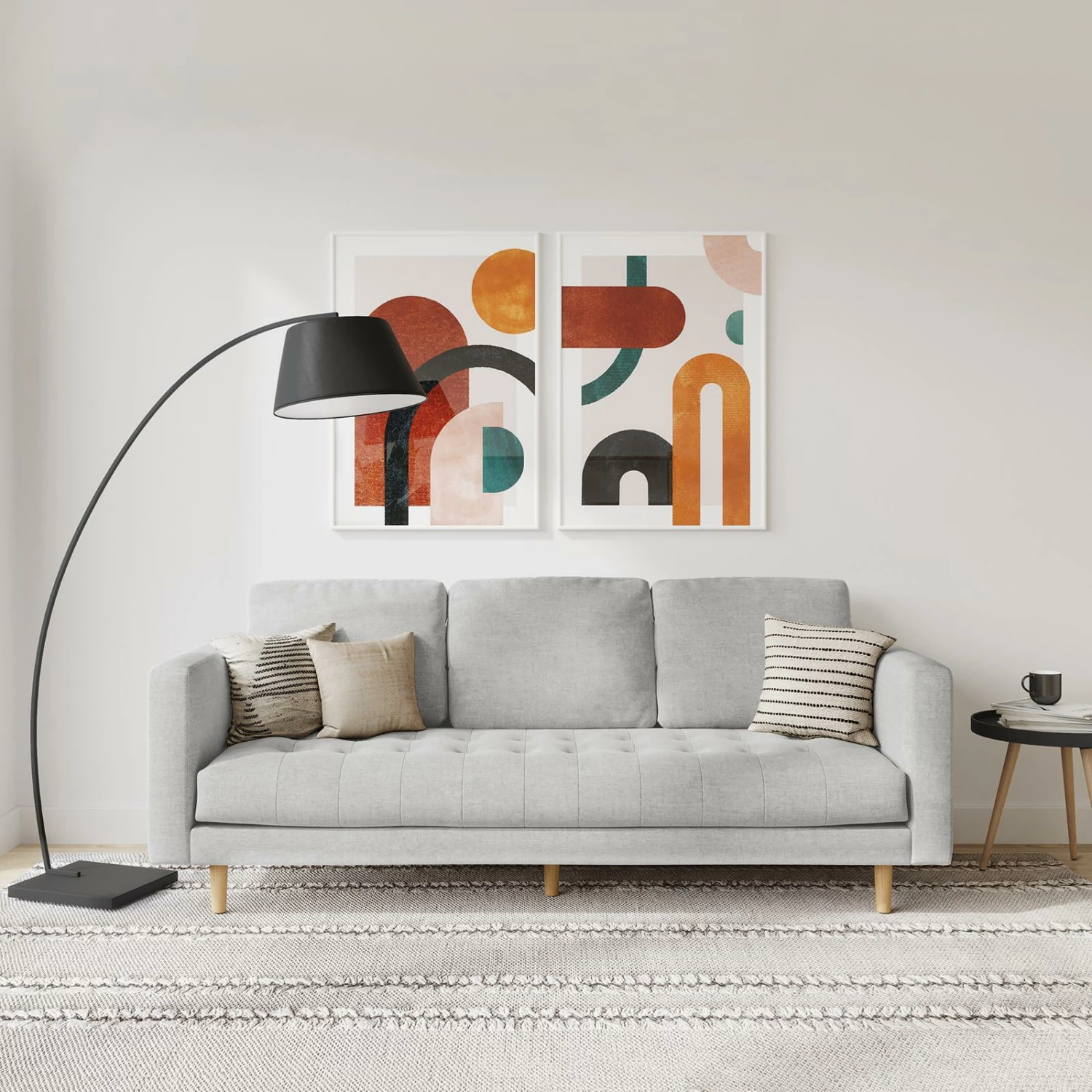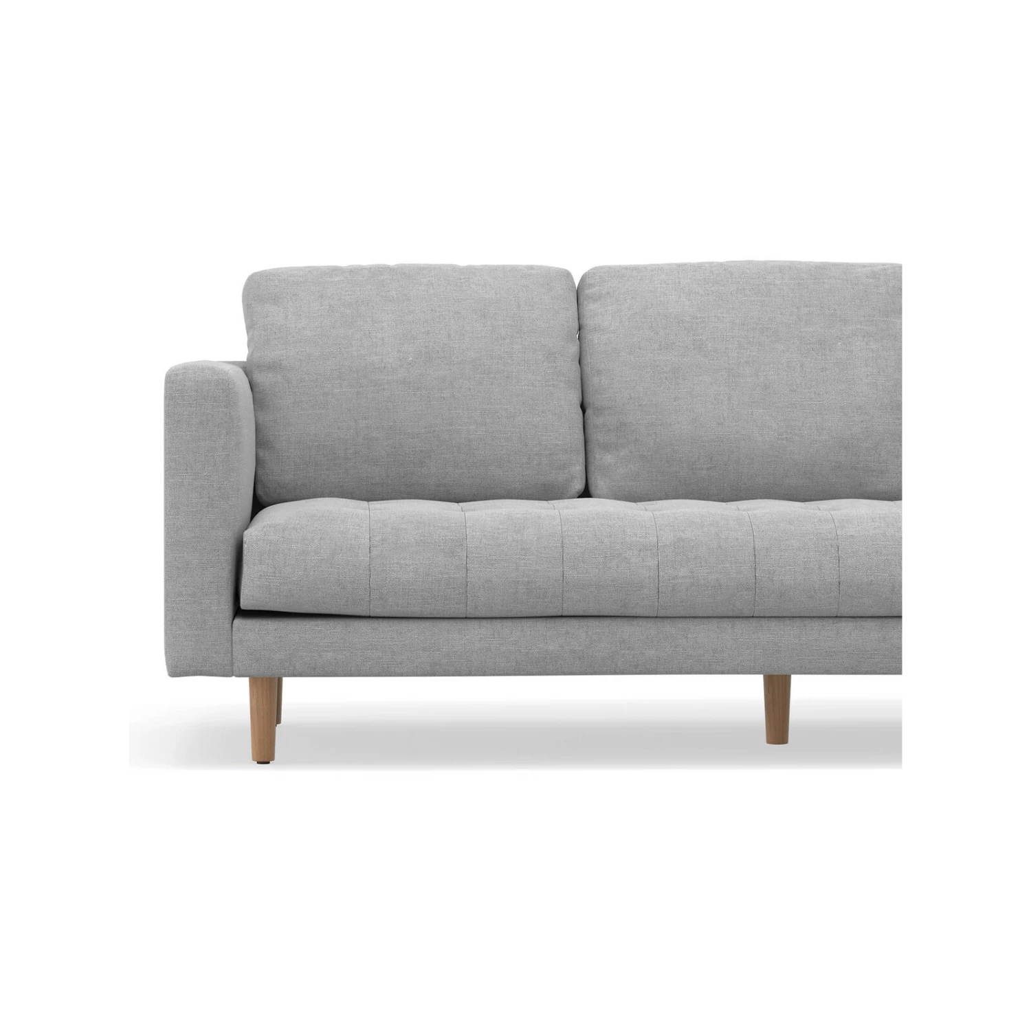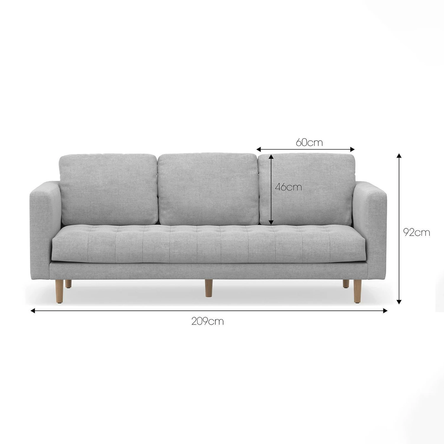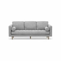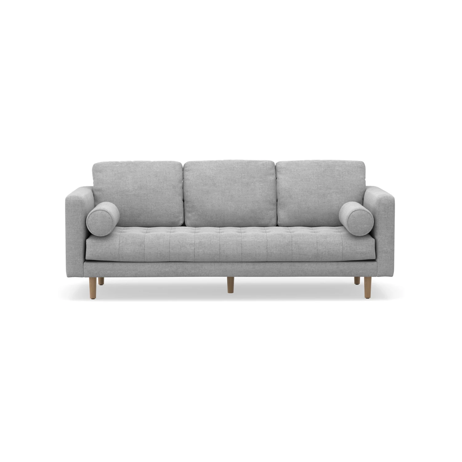 Exuding Danish mid-century glamour with a modern twist, the Kirra sofa in Dove Grey with Natural Legs brings understated luxury and elevated living. Enveloped in a beautiful classic grey fabric with timeless biscuit tufting details, round end bolsters and tapered timber legs, Kirra is a stunning work of art reminiscent of the design language of its time.
