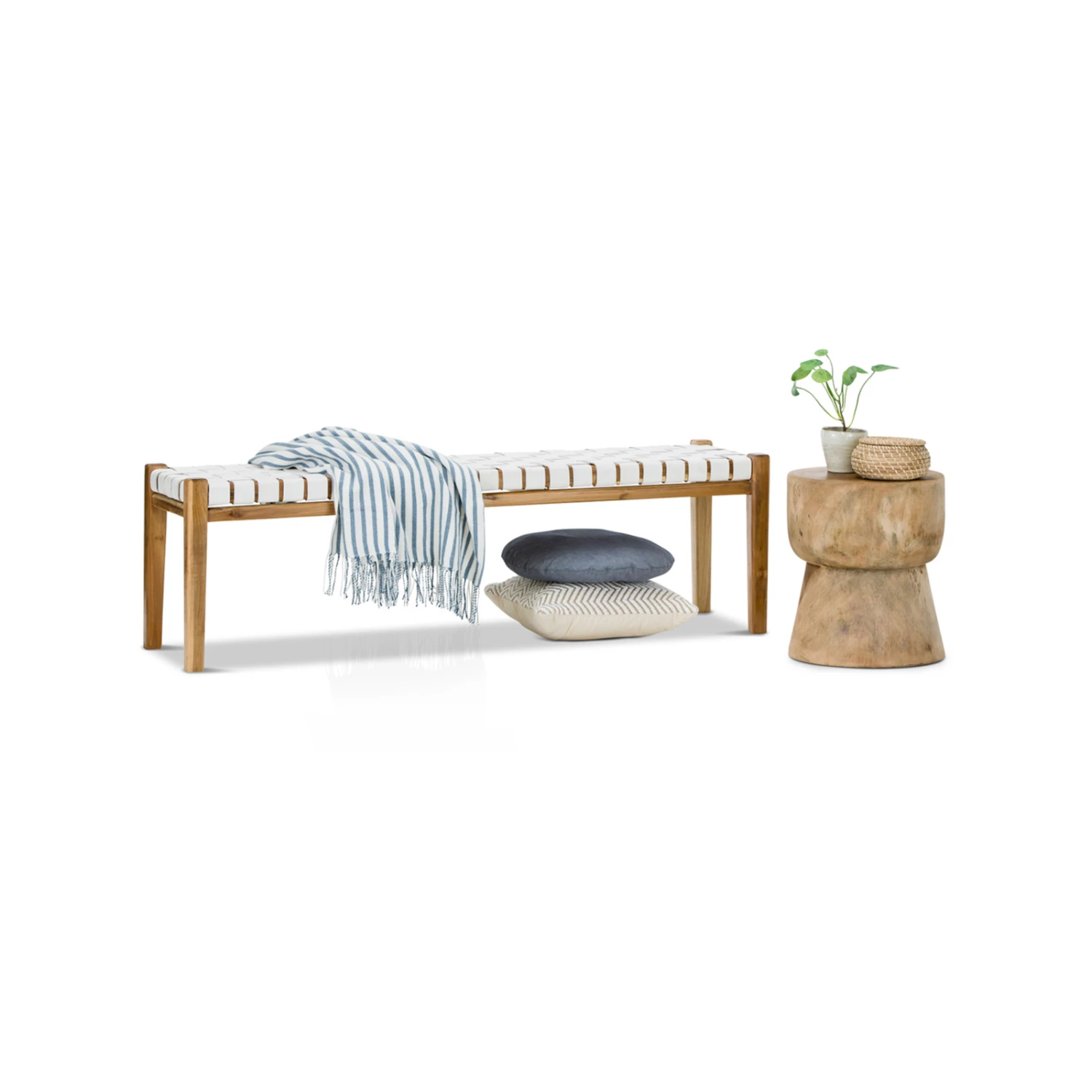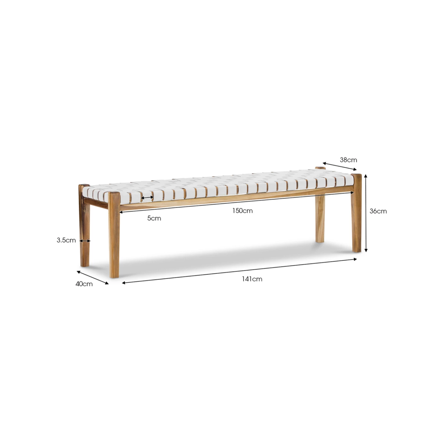 Nothing beats the comfort and style of leather. The Leather Lazie Bench is the perfect companion to a stylish setting whether it’s in the hallway, at the dining table or at the end of your bed. Made from solid Teak and woven leather straps, the Leather Lazie Bench will charm you even before you sink into the bliss of comfort. These classic materials will stand the test of time in both durability and cosy style. Bring a touch of Scandinavian feels into your home with the Leather Lazie Bench. Please Take Note: All of our products are beautifully handcrafted from Central Java Indonesia, utilising natural and organic materials, hence no two pieces will be the same. The frame is constructed from natural sustainably grown solid teakwood, the organic composition of the wood will display different shades of colour as intended by mother nature. The cowhide leather are natural, untreated and un-dyed. Natural leathers are raw and colours may differ from hide to hide, small imperfections & blemishes may also be visible. Leathers will also soften and crease overtime. To maintain the leather please kindly use industry approved leather cleaners & moisturisers and keep away from harsh weather and direct exposure under sunlight.