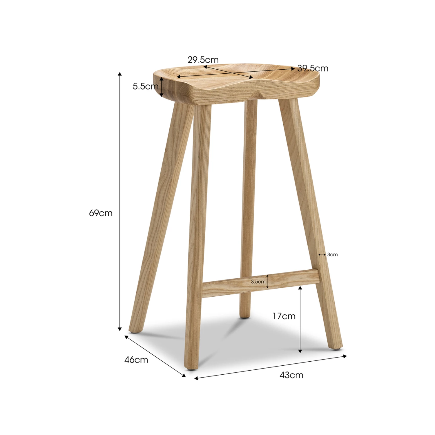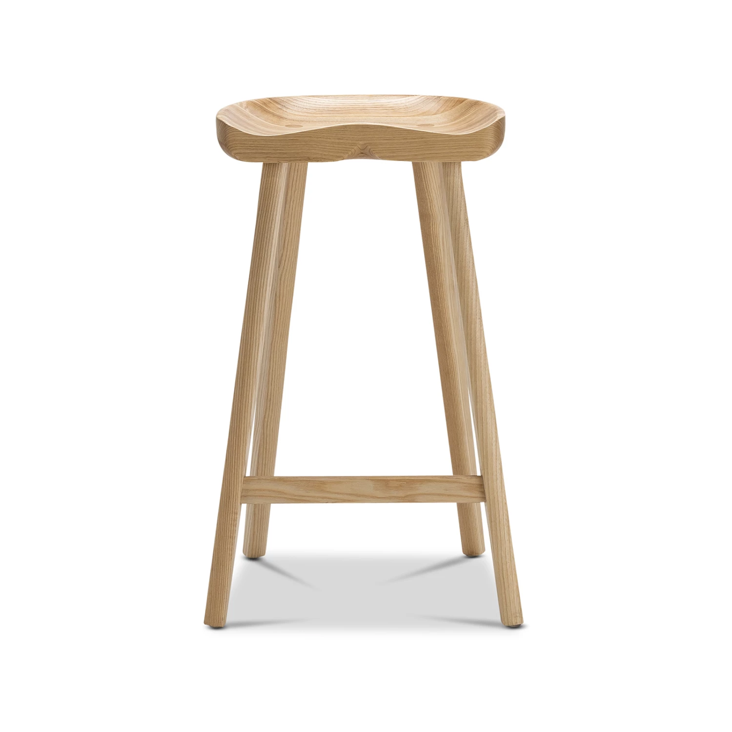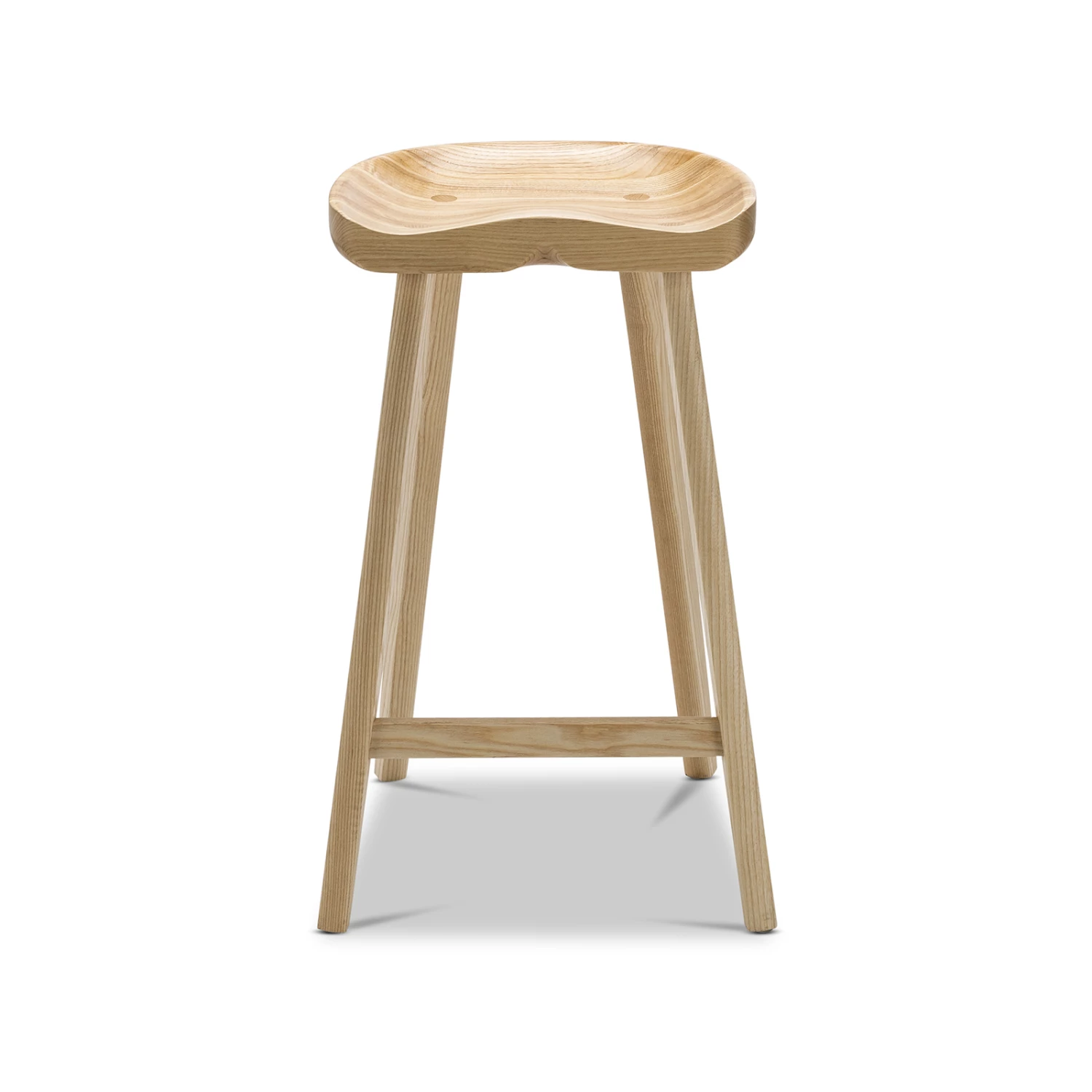 A take on vintage tractor seats, the Moku is a solidly crafted wooden barstool now interpreted into a modern finish, utilizing stunning solid American Ashwood Oak. The stool features a contoured saddle style seat providing ergonomic comfort, paired with a foot rest bar built into the design. The Moku Tractor Barstool is lightweight and tucks away neatly under kitchen benches out of the way. Please note all our products utilize natural & organic materials, the organic composition of the wood may display different shades of colour as intended by mother nature.