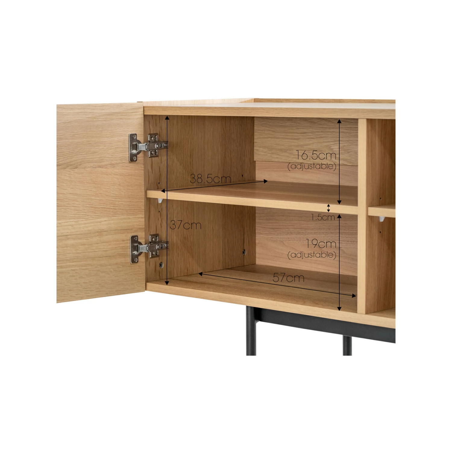 - Adjustable shelves with soft closing hinges