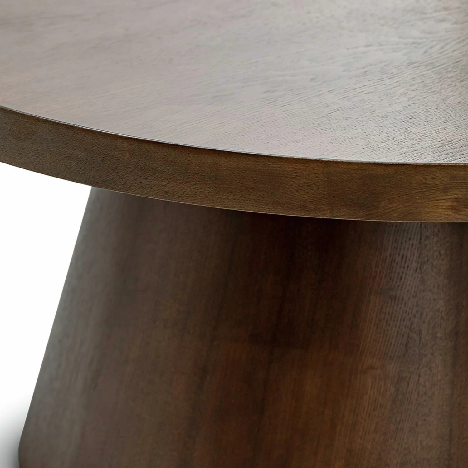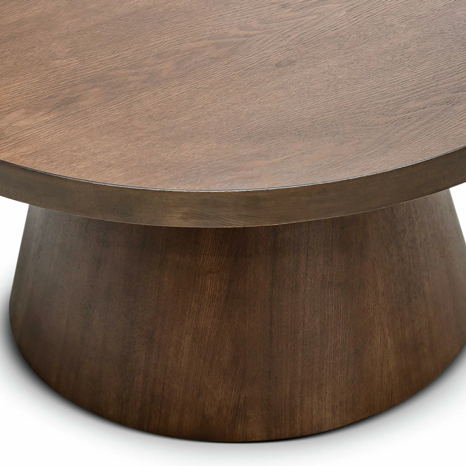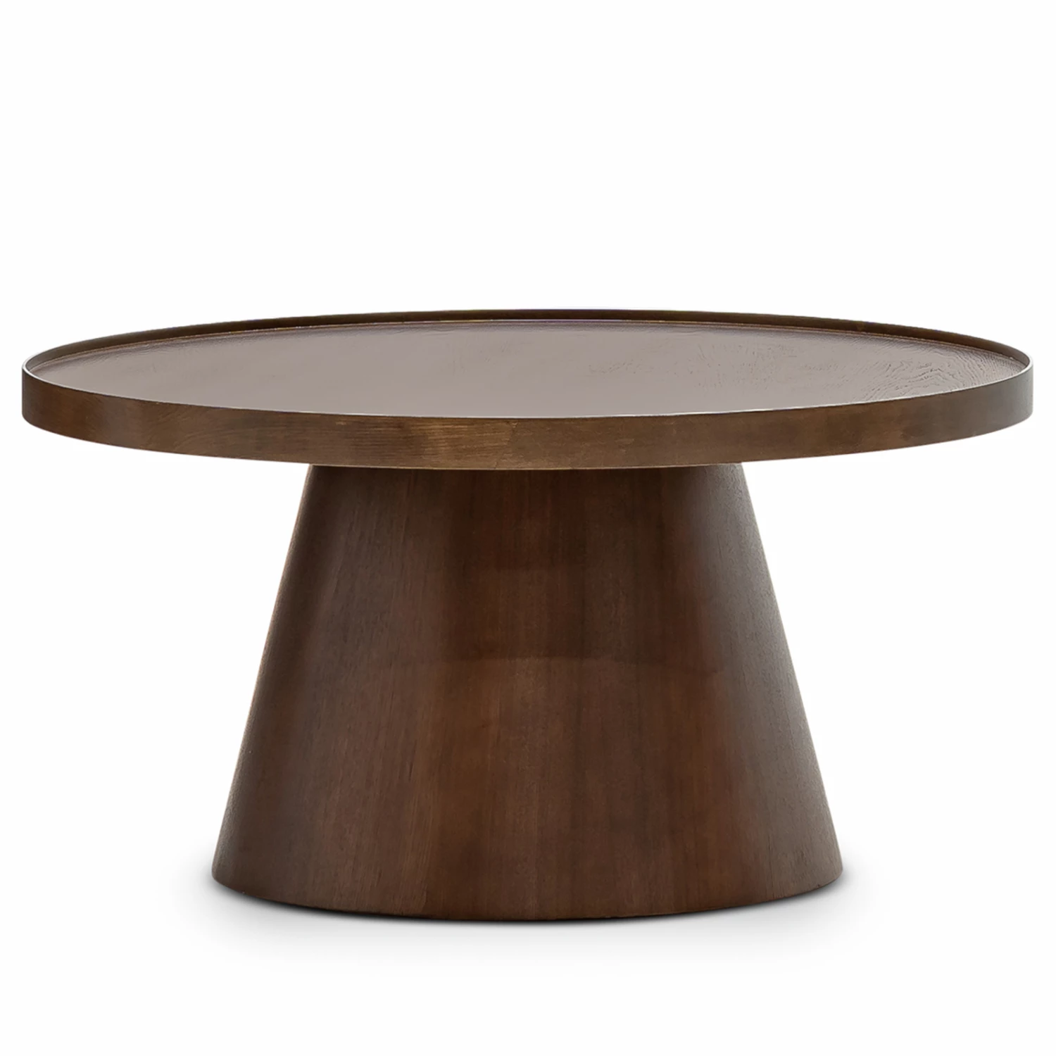 A beautiful coffee table is a sign of good taste in styling. The Adan round coffee table is a modern take on a sophisticated, yet practical centerpiece. A solid framework fashioned into a perfectly circular 80cm round diameter table top. Featuring a subtle tray table lip for some added character, resting on a pedestal leg base. Designed in consideration by offering plenty of surface space and leg room beneath. The American walnut veneer, brings an earthy tone and mid century modern contemporary looks to any living room. Ideal for entertaining guests, decor arrangement or simply as open storage, this exquisite piece will make you proud.