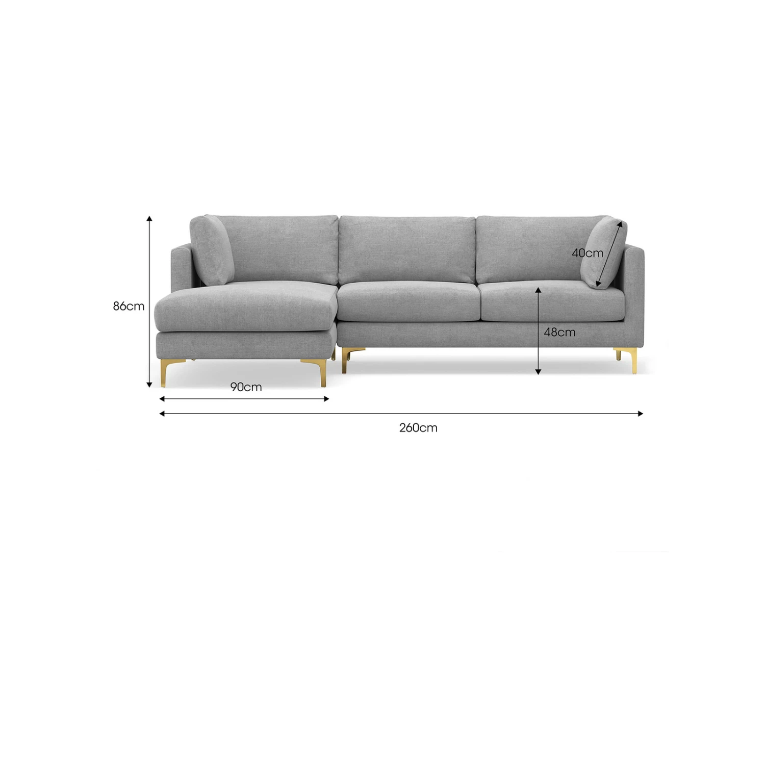 - Overall: 260cm W x 160cm D x 86cm H