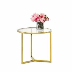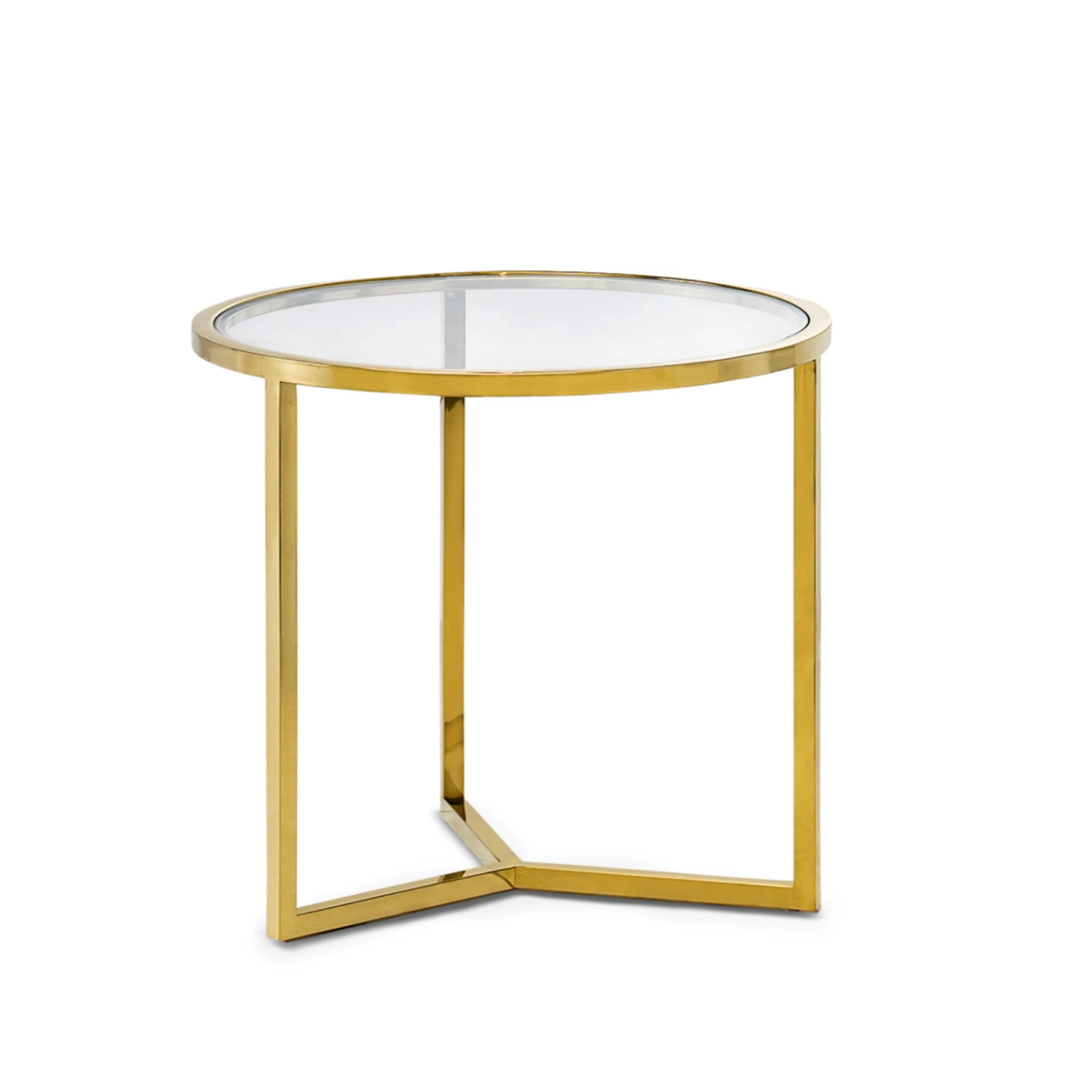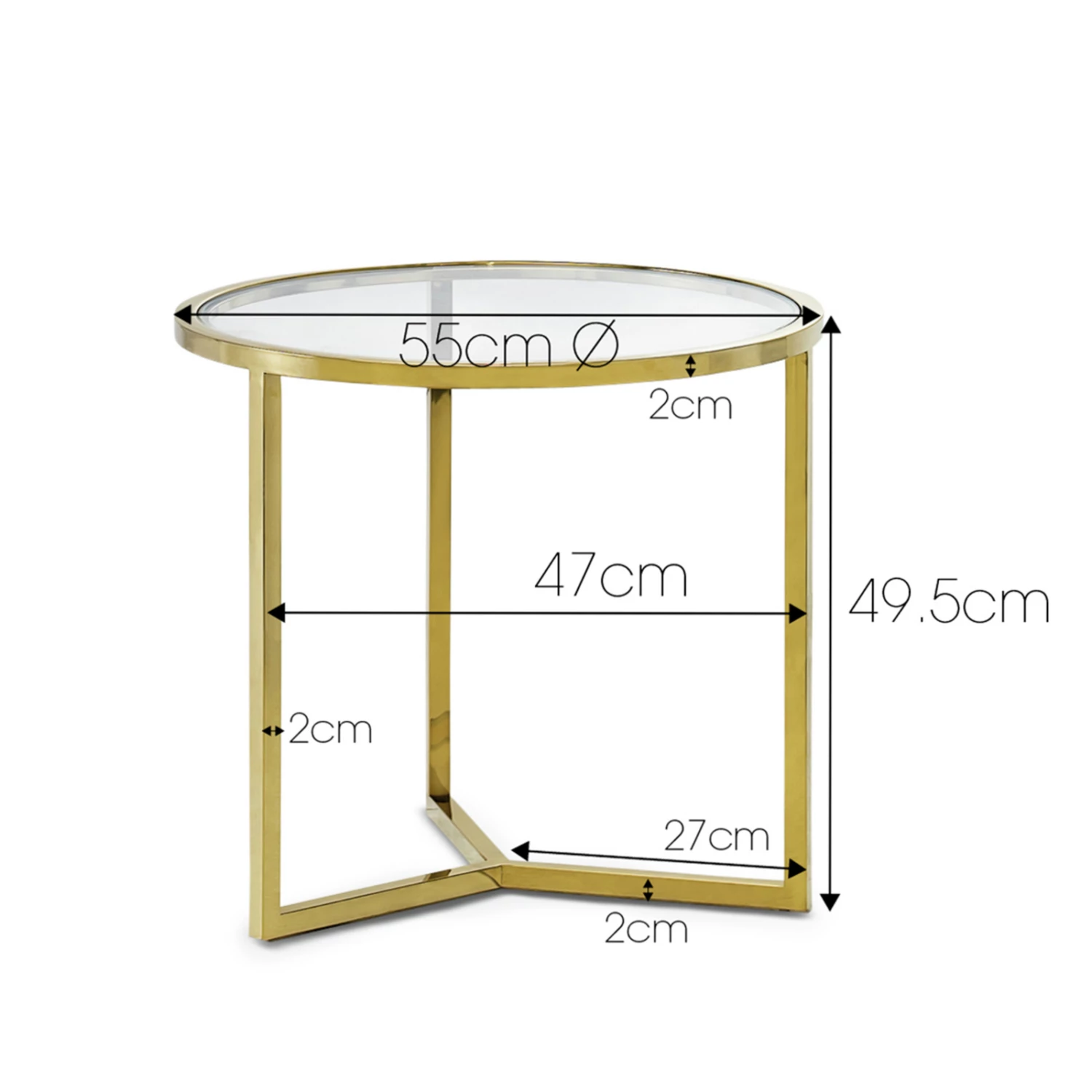 Let your glamourous side out with the Bianka side table! The fabulous ember gold tone of the solid stainless steel frame will razzle and dazzle even your most fashionable guests. The 55cm tempered glass top will easily accompany anything and everything between a girl’s night and having the queen over for tea and cake. Make no mistake, as she will be impressed with the Bianka side table.
