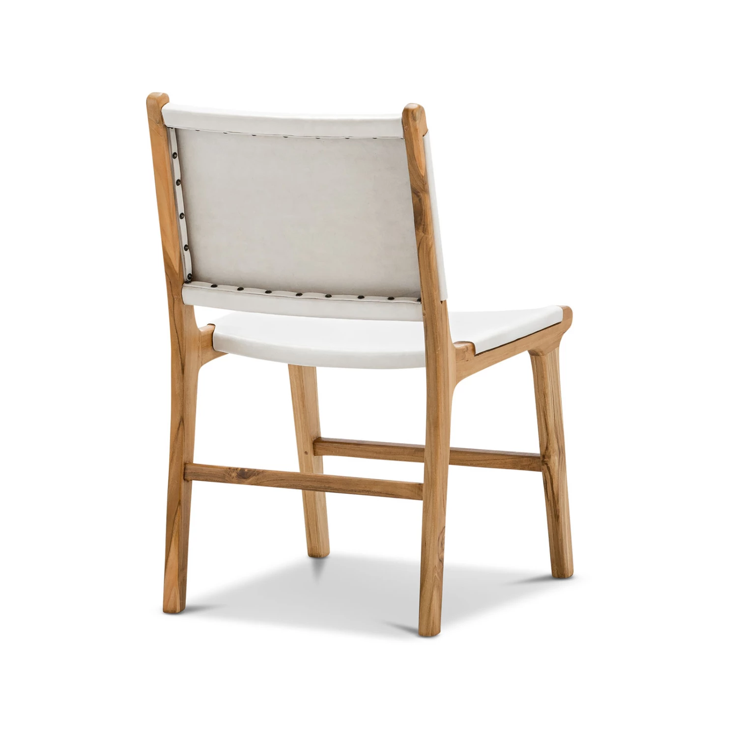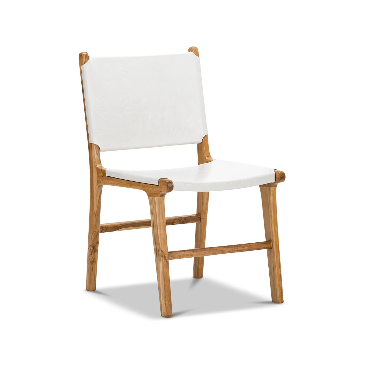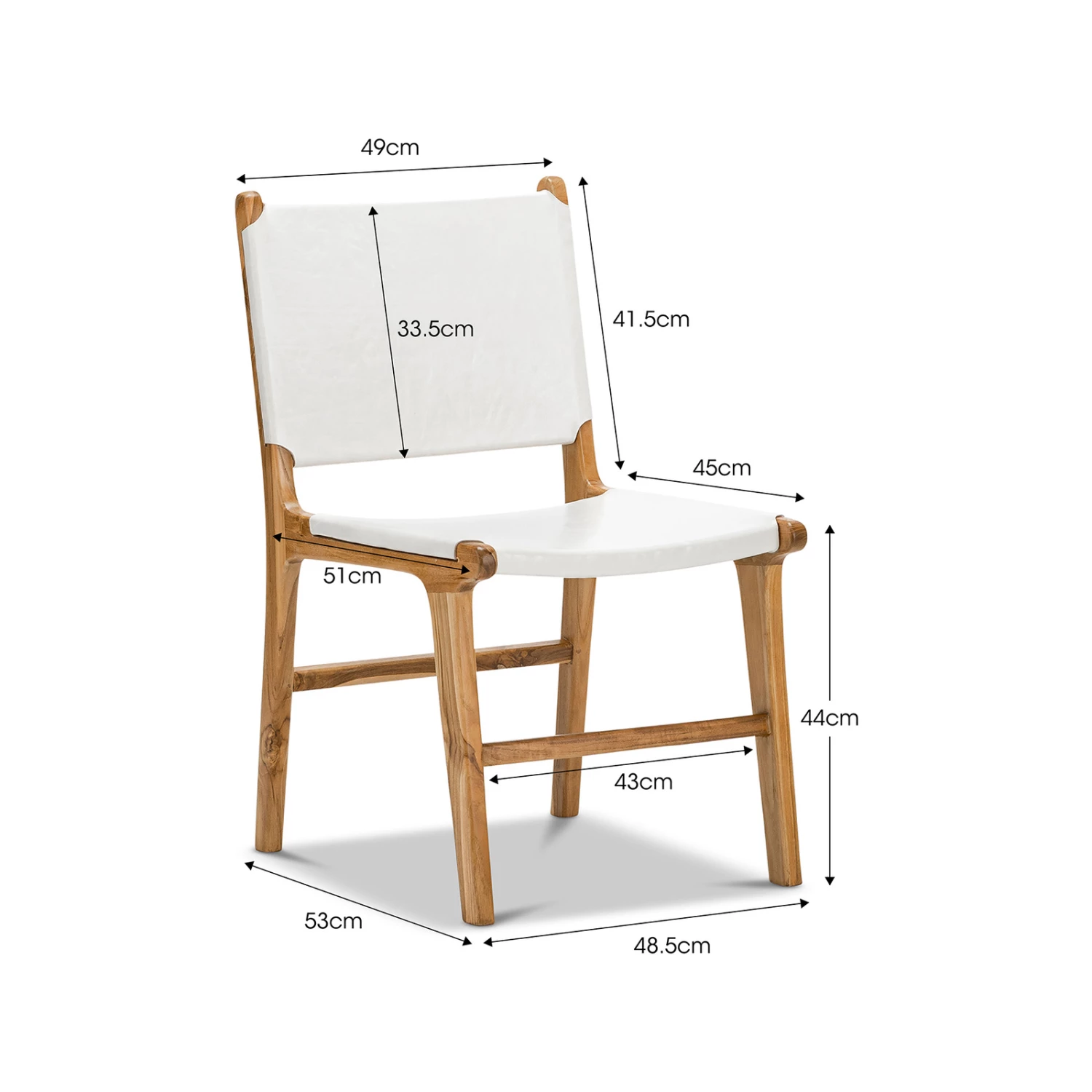 The Casey Flat Leather Dining Chairs adds a touch of Danish inspired refinement to your dining space with a light splash of coastal allure. Unlike the conventional woven strap array, the flat leather version as the name suggests headlines a fully stretched cowhide sheet for both the seating and back areas complemented by a solid sustainably sourced solid teakwood frame. The chairs are the perfect seating option to add style, texture and functionality to your contemporary dining experience. Perfectly balanced natural colour tones effortlessly pairs against timber or marble table options ensuring a timeless look to endure for years to come.Please Take Note: All of our products are beautifully handcrafted from Central Java Indonesia, utilising natural & organic materials, hence no two pieces will be the same.The frame is constructed from natural sustainably grown solid teakwood, the organic composition of the wood will display different shades of colour as intended by mother nature.While our team take the upmost care in selecting our hides, leather is a natural product and differs from hide to hide. Small variances in colour may be expected. Small imperfections, marks & blemishes may also be visible. This is not considered a fault but inherent of the natural beauty and uniqueness of the leather.