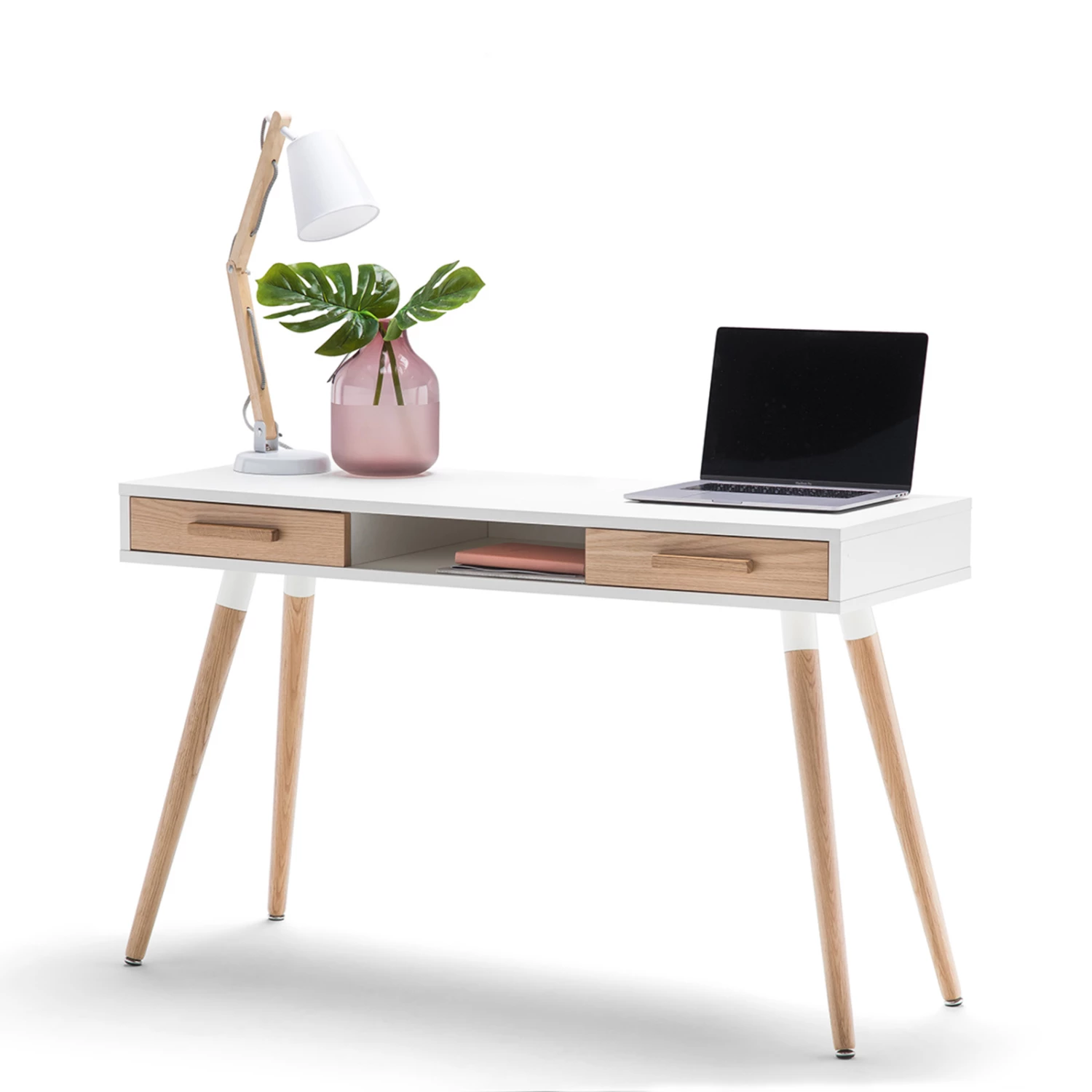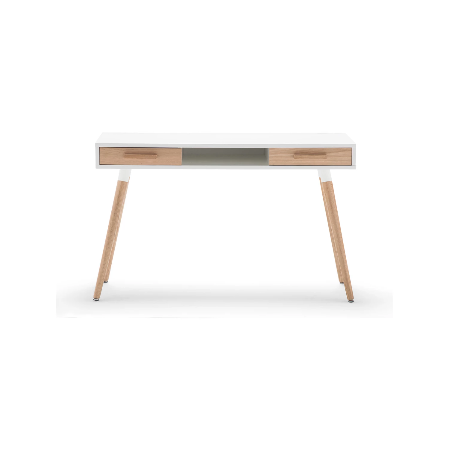 Understatedly elegant, the Myst Desk is the ideal companion to the minimalist styled interior. With two Oak veneer drawers to give the unit an earthy pop-out look, and steel reinforced legs, this desk is made to give any room an understated flair of style.