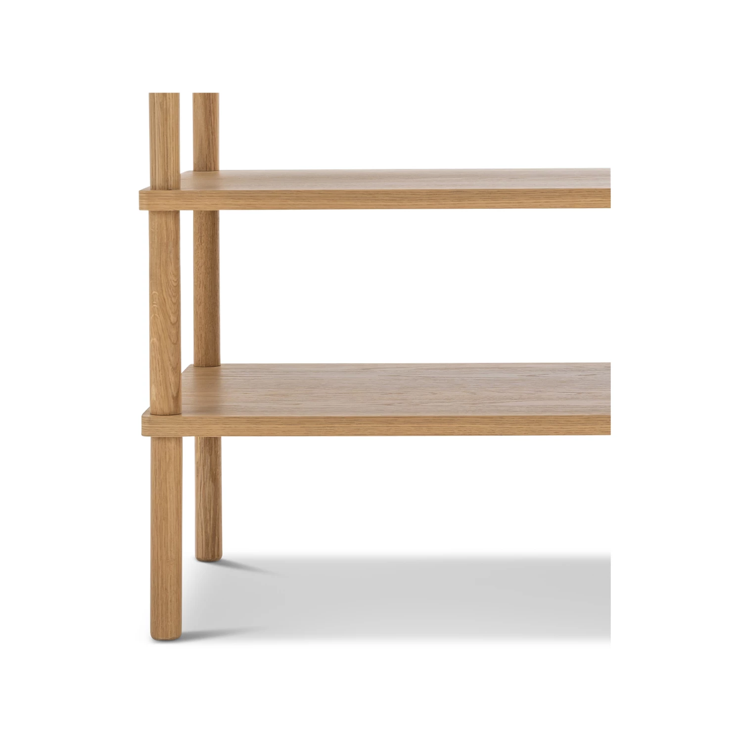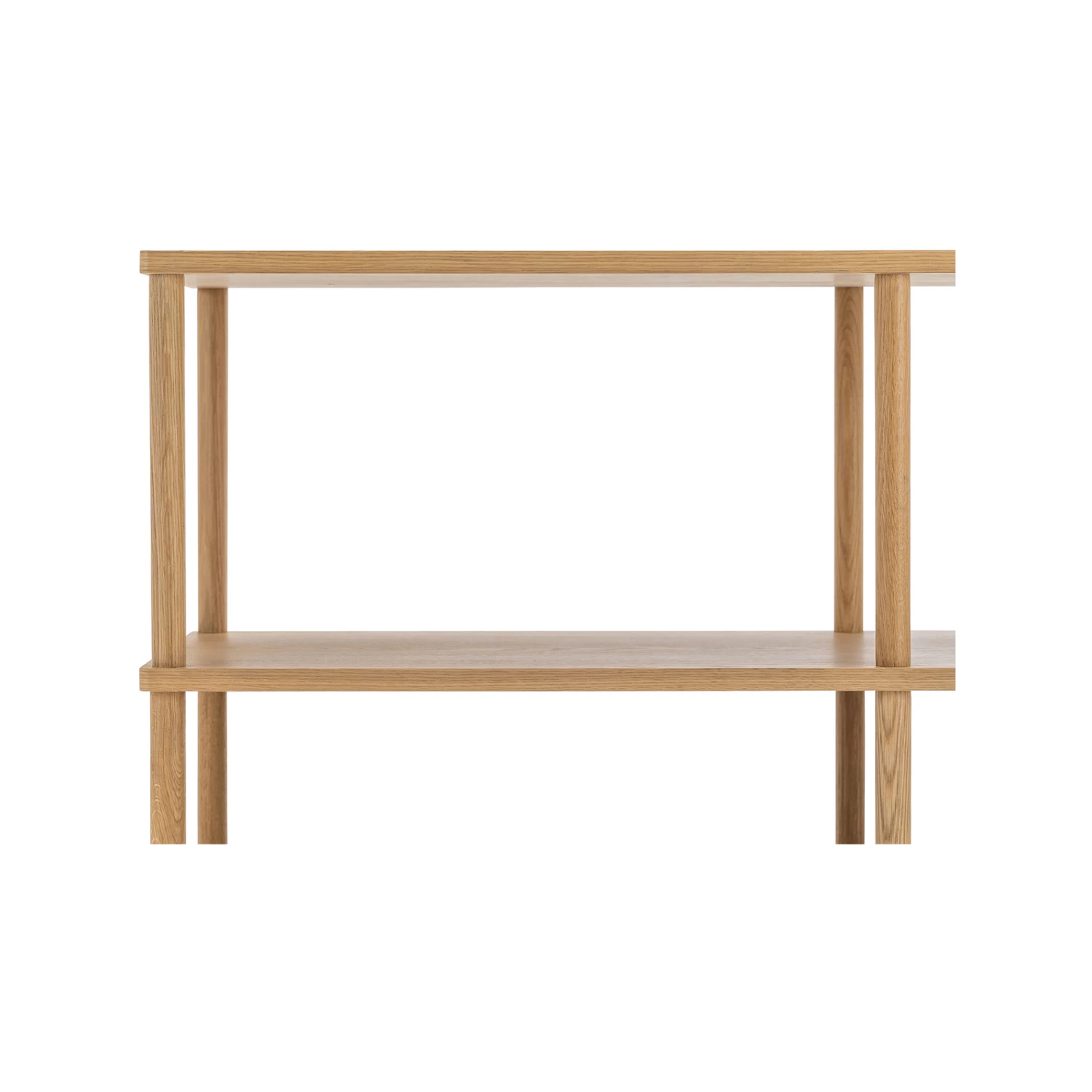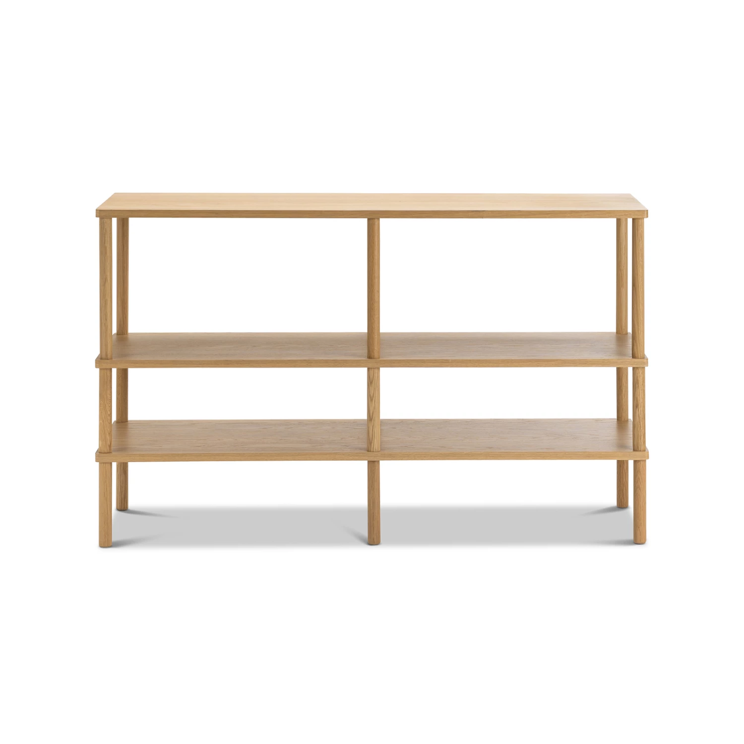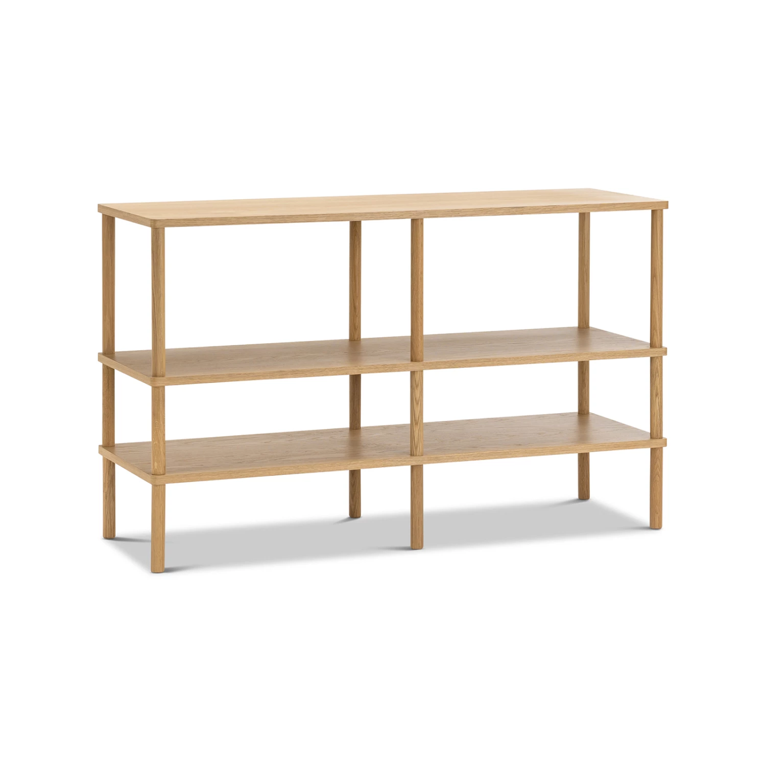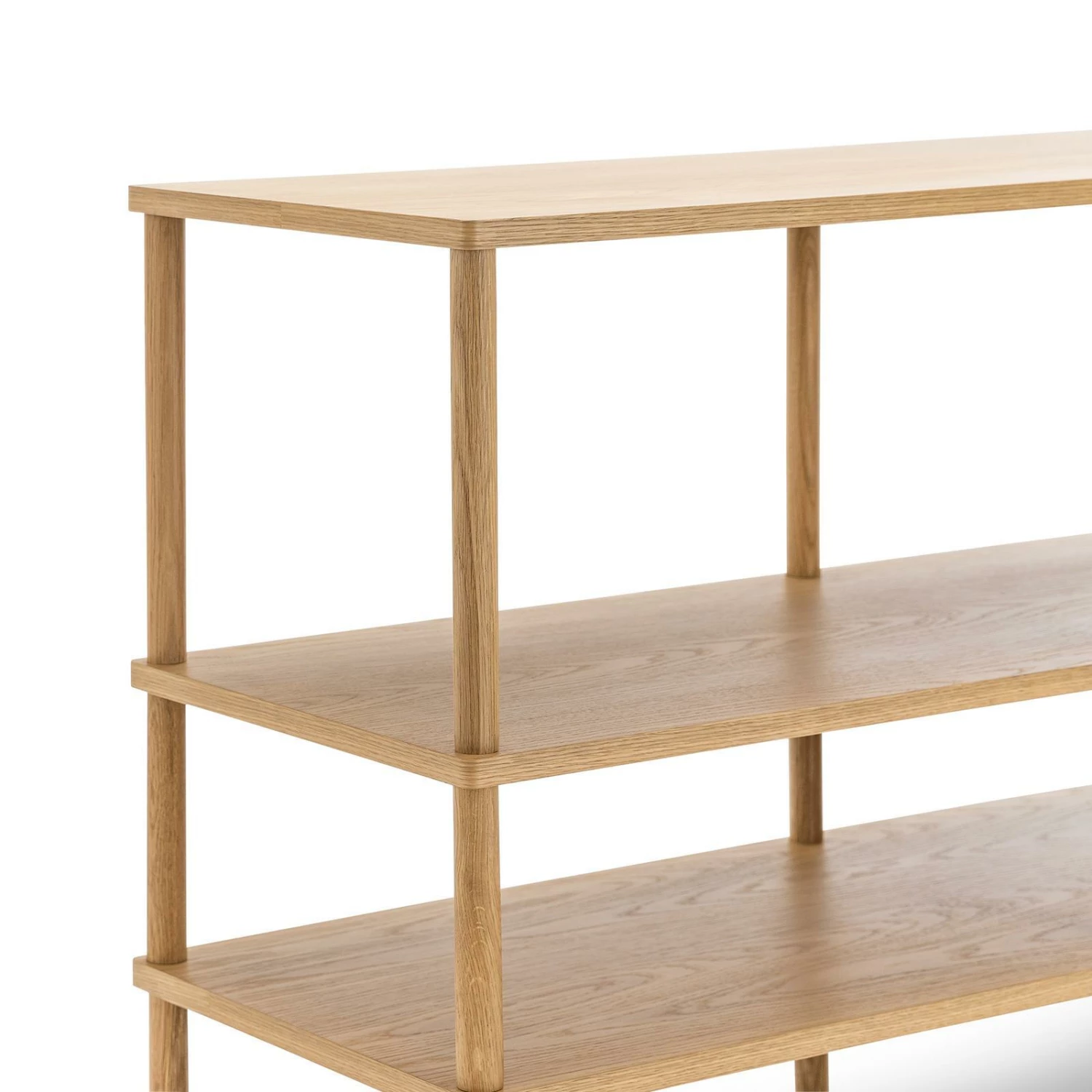 Transform your space and style up a storm with the Rakie Wide Shelving Unit, showcasing deeper dimensions while staying faithful to a minimal Japandi aesthetic. Featuring natural solid and veneered oak as well as two different heights of shelving and soft rounded corners. The Wide Rakie can accommodate a variety of books, décor and storage items, offering plenty of flexibility for every corner of the house from bedrooms and living rooms and even works as a great option when used as a console table.